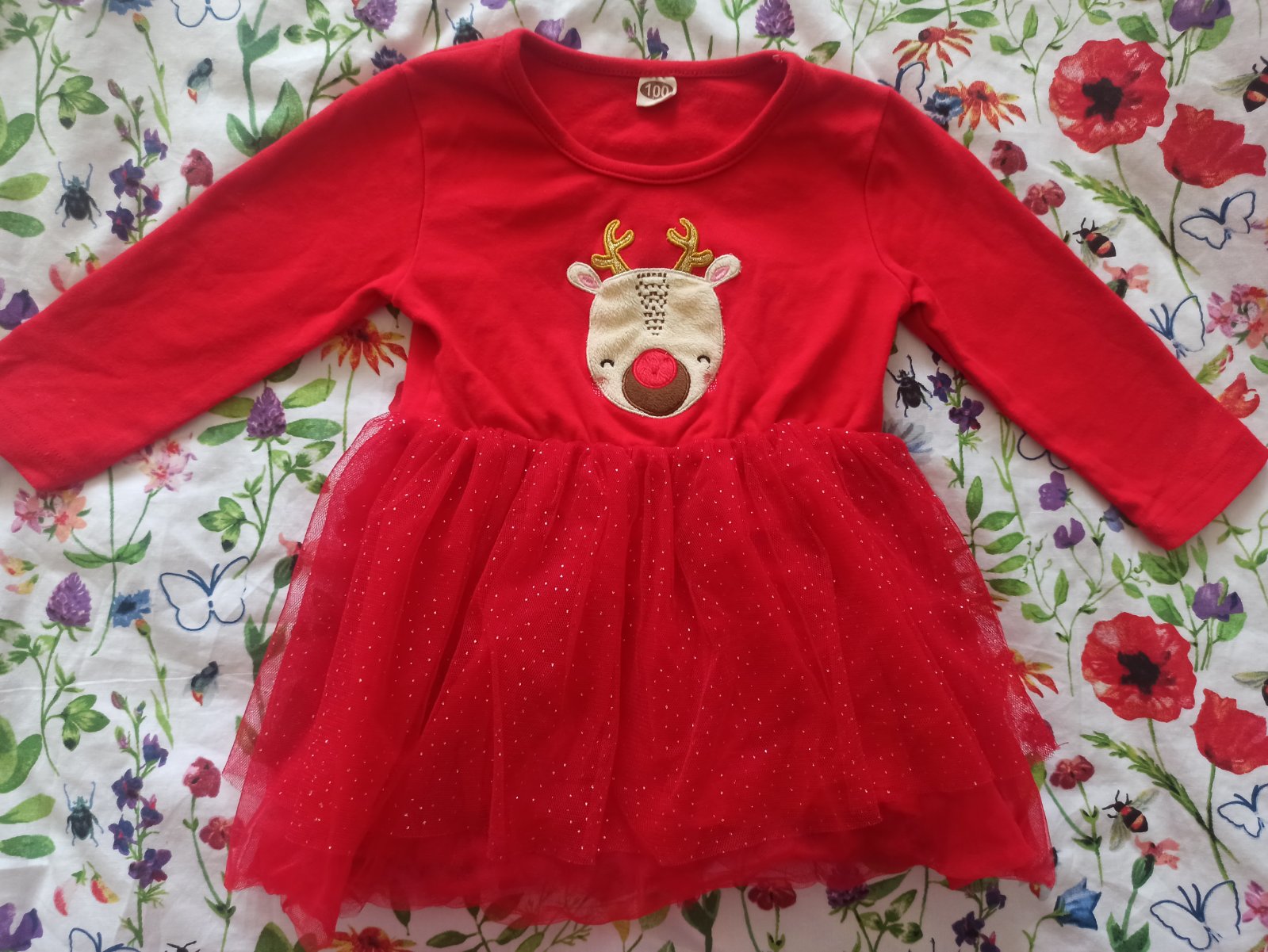 Vianočné červené šaty so sobíkom