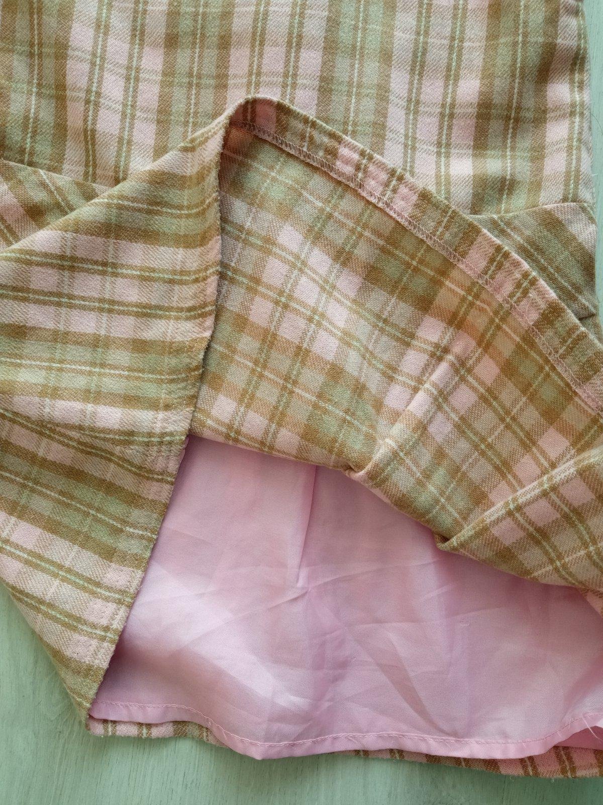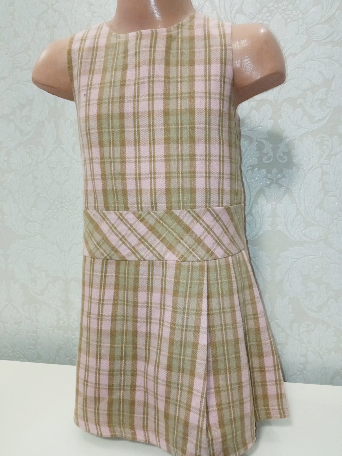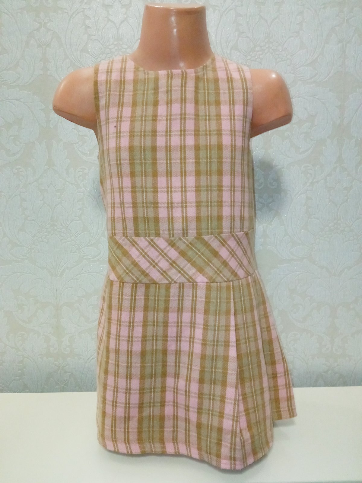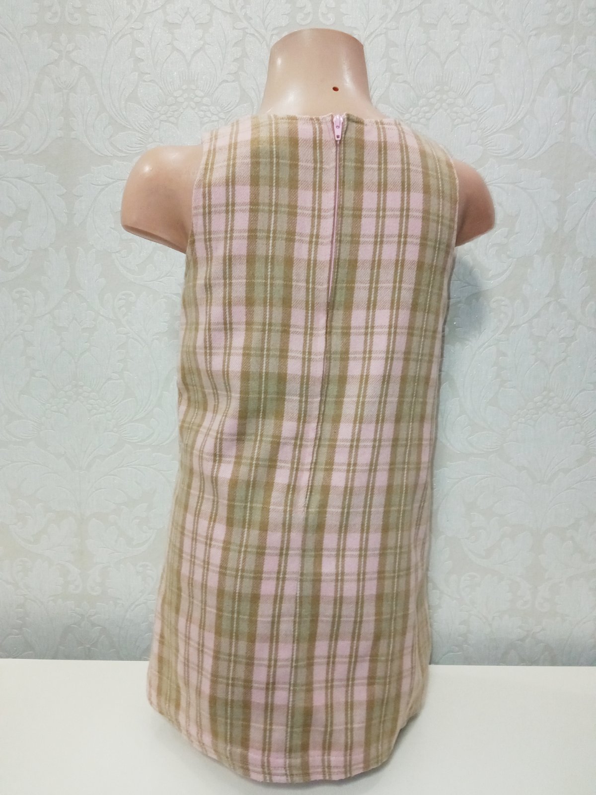 Dievčenské hnedo-ružové kockované šaty bez rukávov , zapínanie vzadu na zips, nie sú elastické, hrubšie, vrchná látka 50%vlna,50%polyester,podšívka 100%polyester.