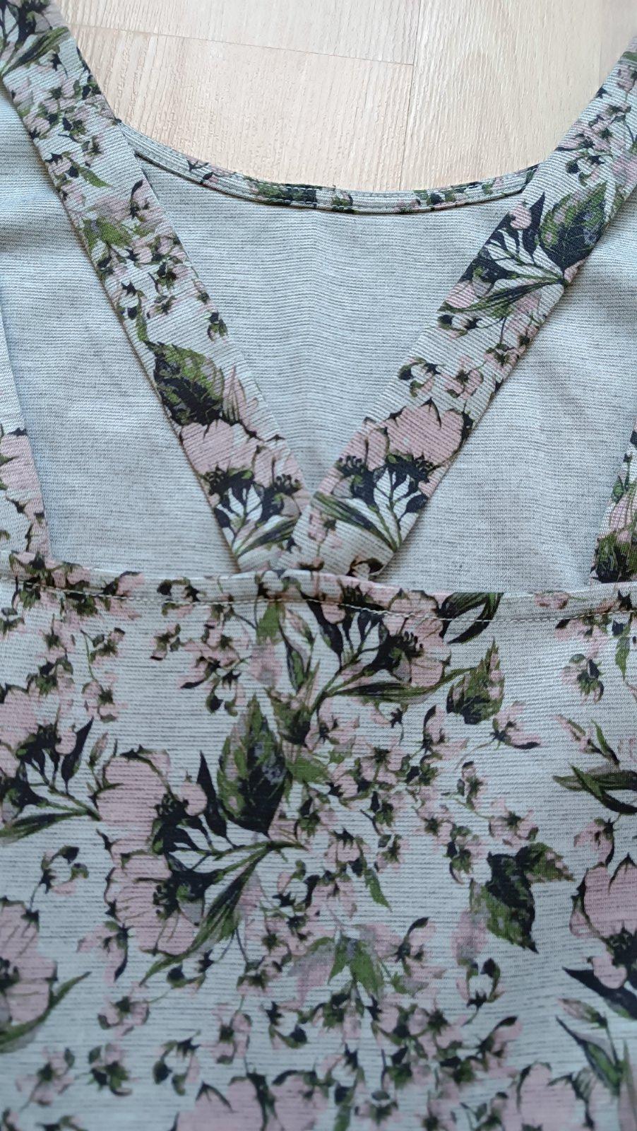 Pás 2x34,dĺžka 87, pod pazuchami 2x41cm, svetlo šedé s ružovými kvetmi, top stav, biely rolák nie je na predaj