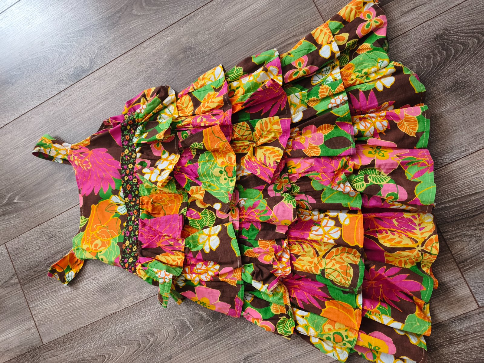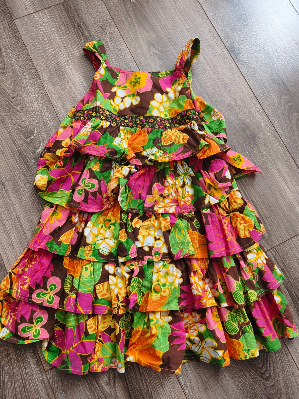 Nádherné šaty zn. Mayoral s 3D motívmi kvetov, veľkosť 116, nádherne ukážu na postave. Majú drobnú chybičku, dierku v sieťovanej časti /viď foto/, ktorá ale ani vo vzore nie je vidieť, zohľadňujem ...