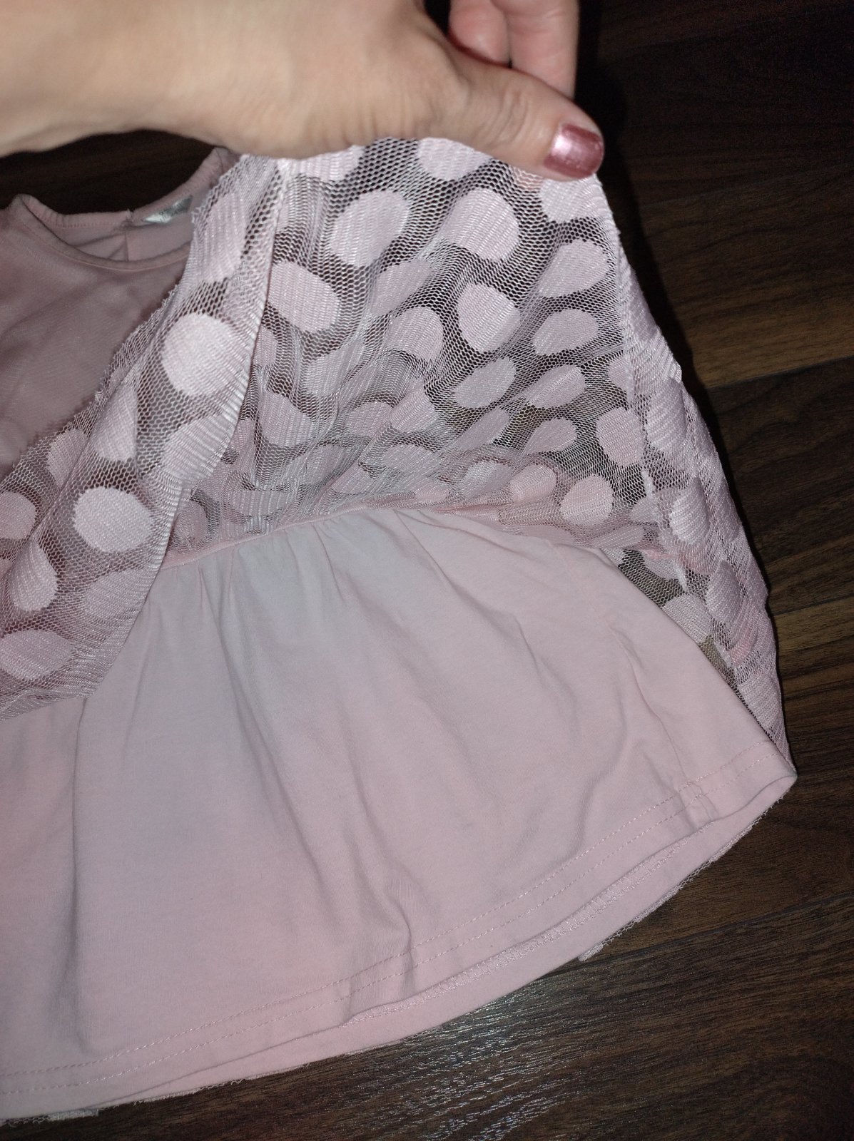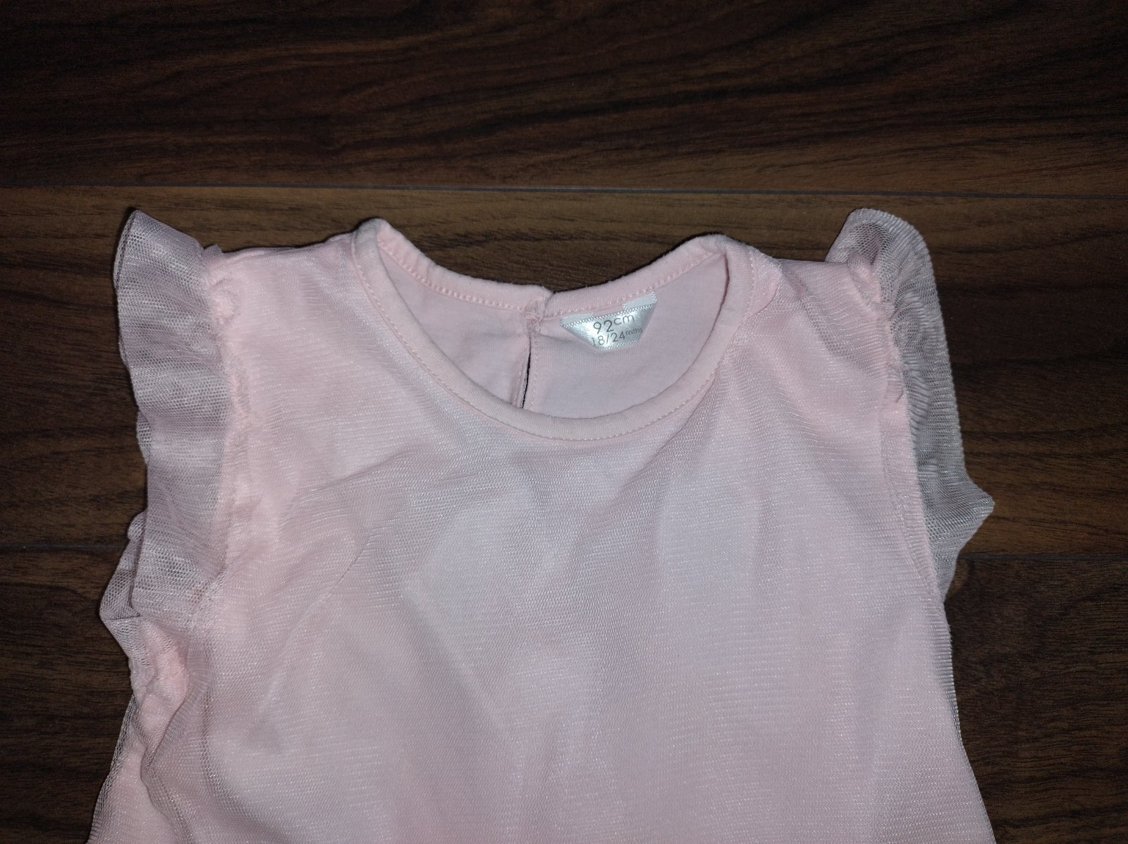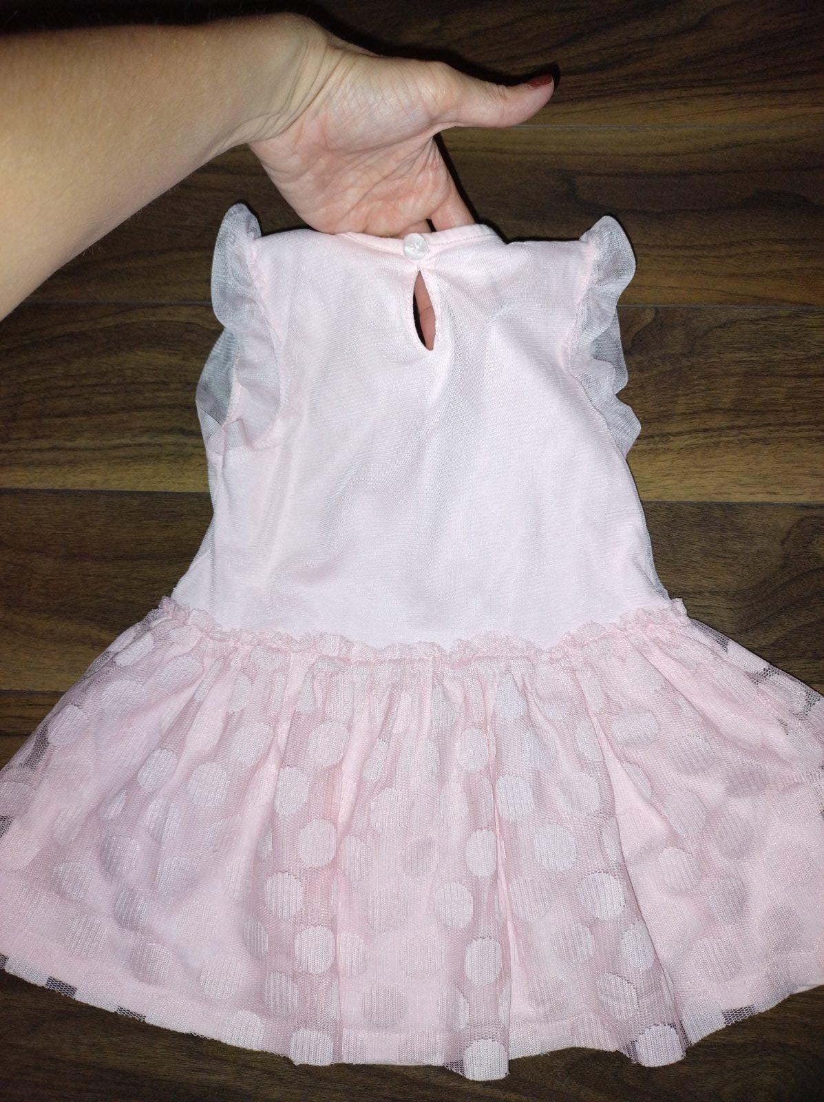 Ružové bavlnené letné šaty s tylovým vrchom. Pepco, 92. Nosené, kde tu zatiahnutý tyl, ale pre malé akčné princezné ešte poslúžia. 1,50 €