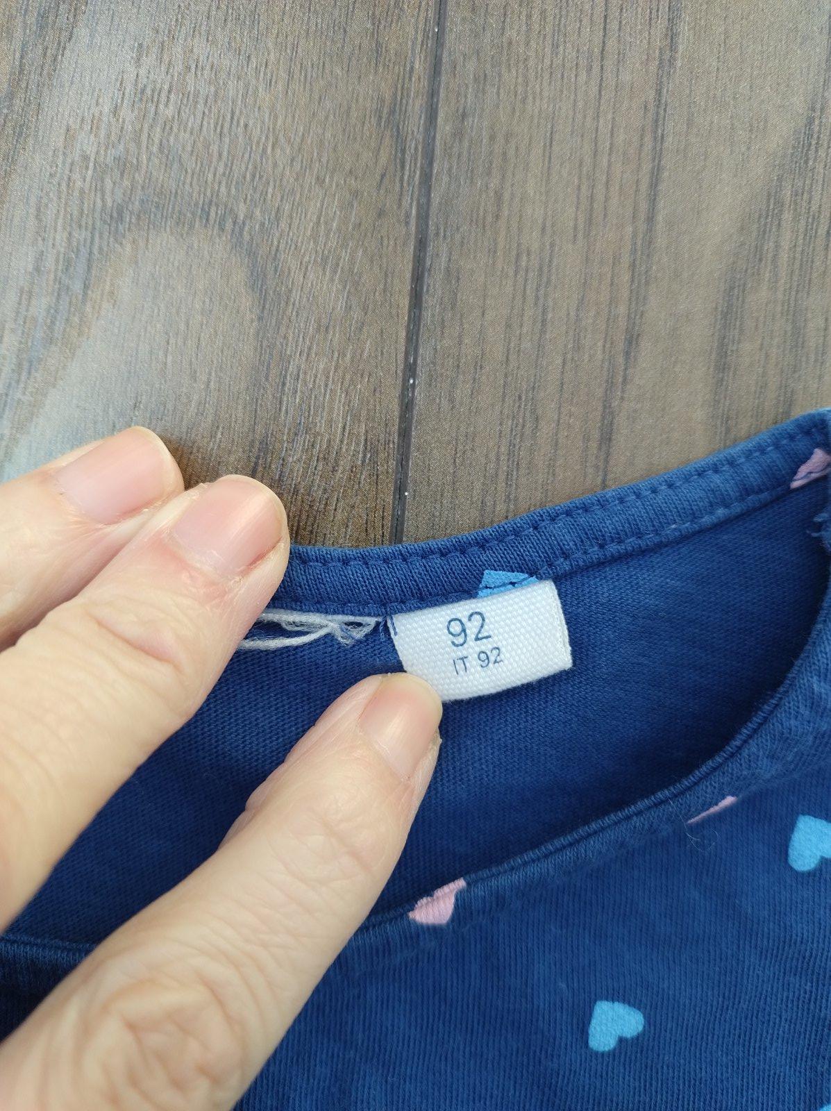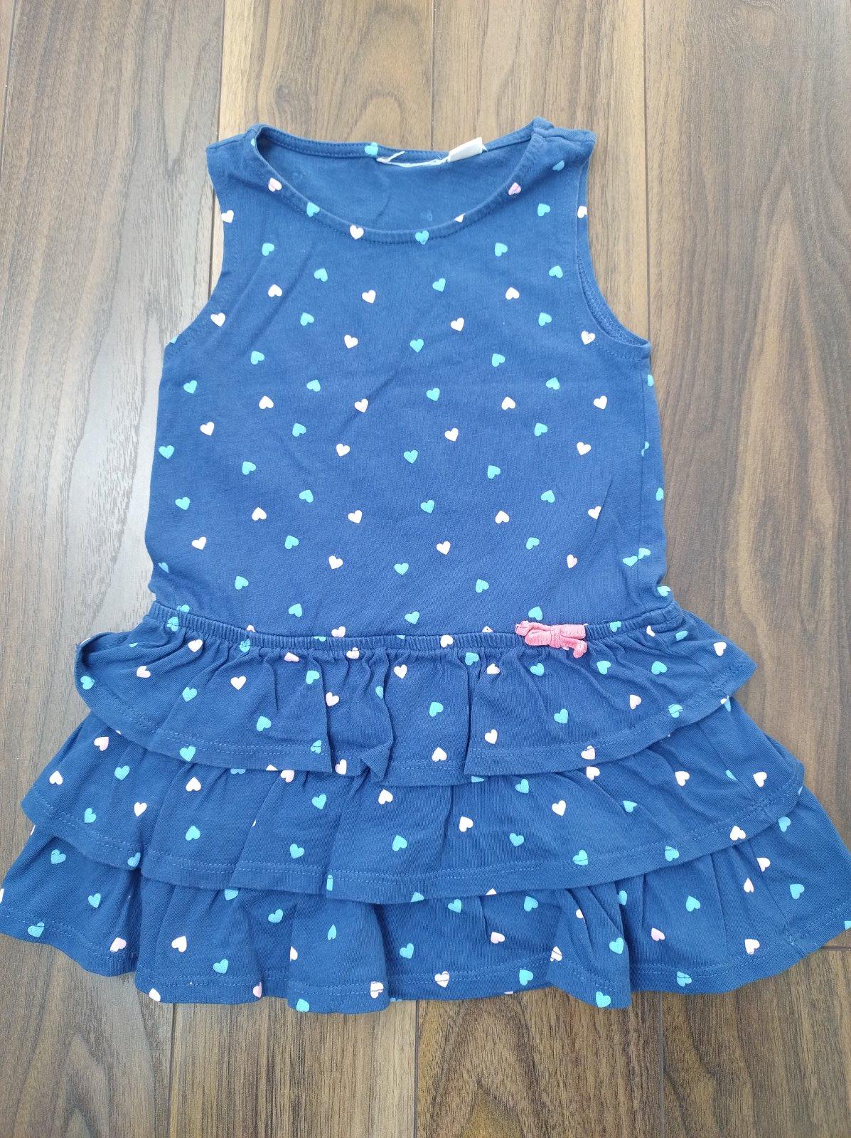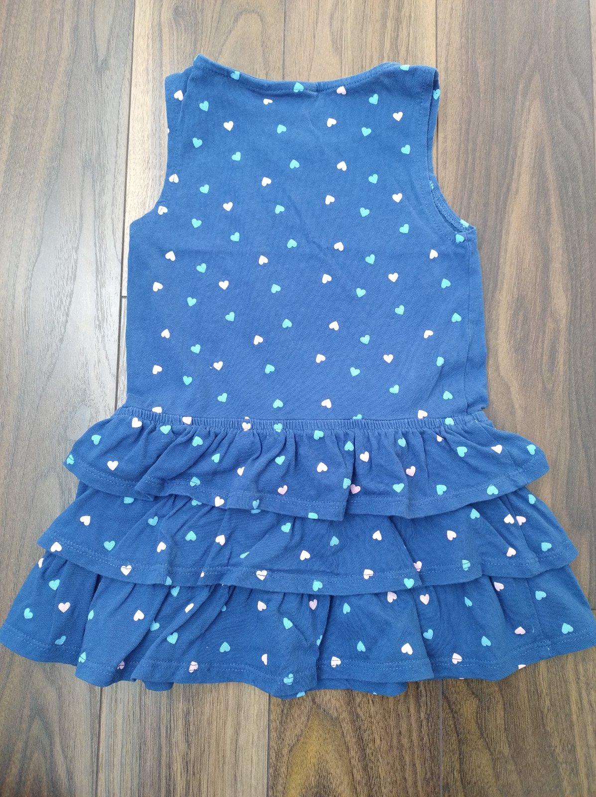 Modré šaty s volánovou sukňou. Štítky značky som odstrihla, kúpené na dovolenke, ale veľkosť 92 (nositeľné aj skôr). Príjemné bavlnené. Bez poškodení. 2 €