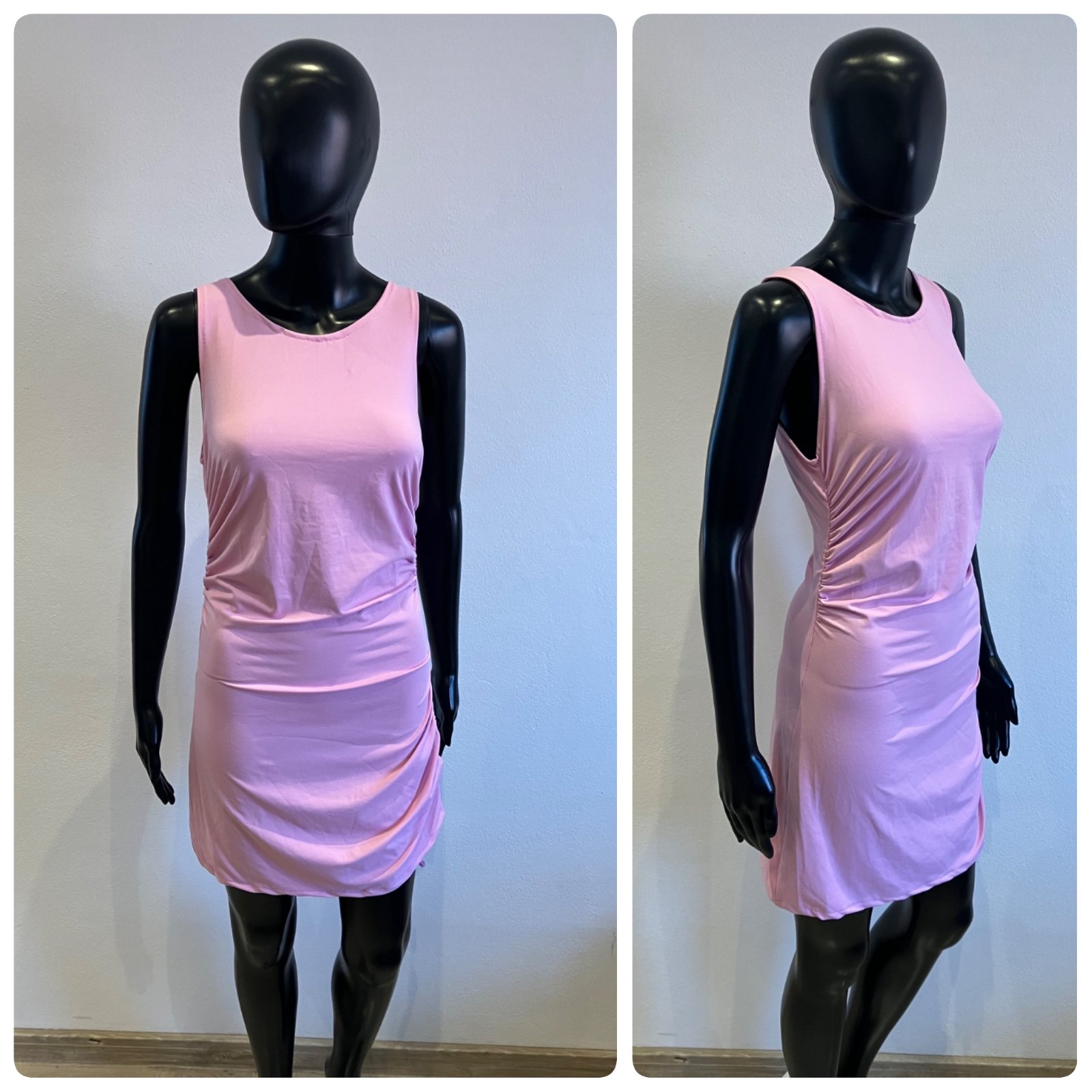 Dámske šaty na hrubé ramienka, nazberkané na bokoch, tenké, elastické, veľkosť cca S.