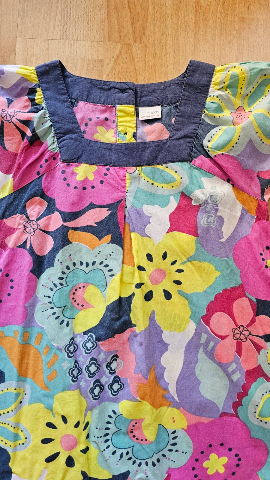 Predám krásne šaty, veľkosť udáva 152 na 12 rokov. Dĺžka šiat je cca 73cm, šaty majú po bokoch vrecká. Cena + poštovné, osobný odber BA.