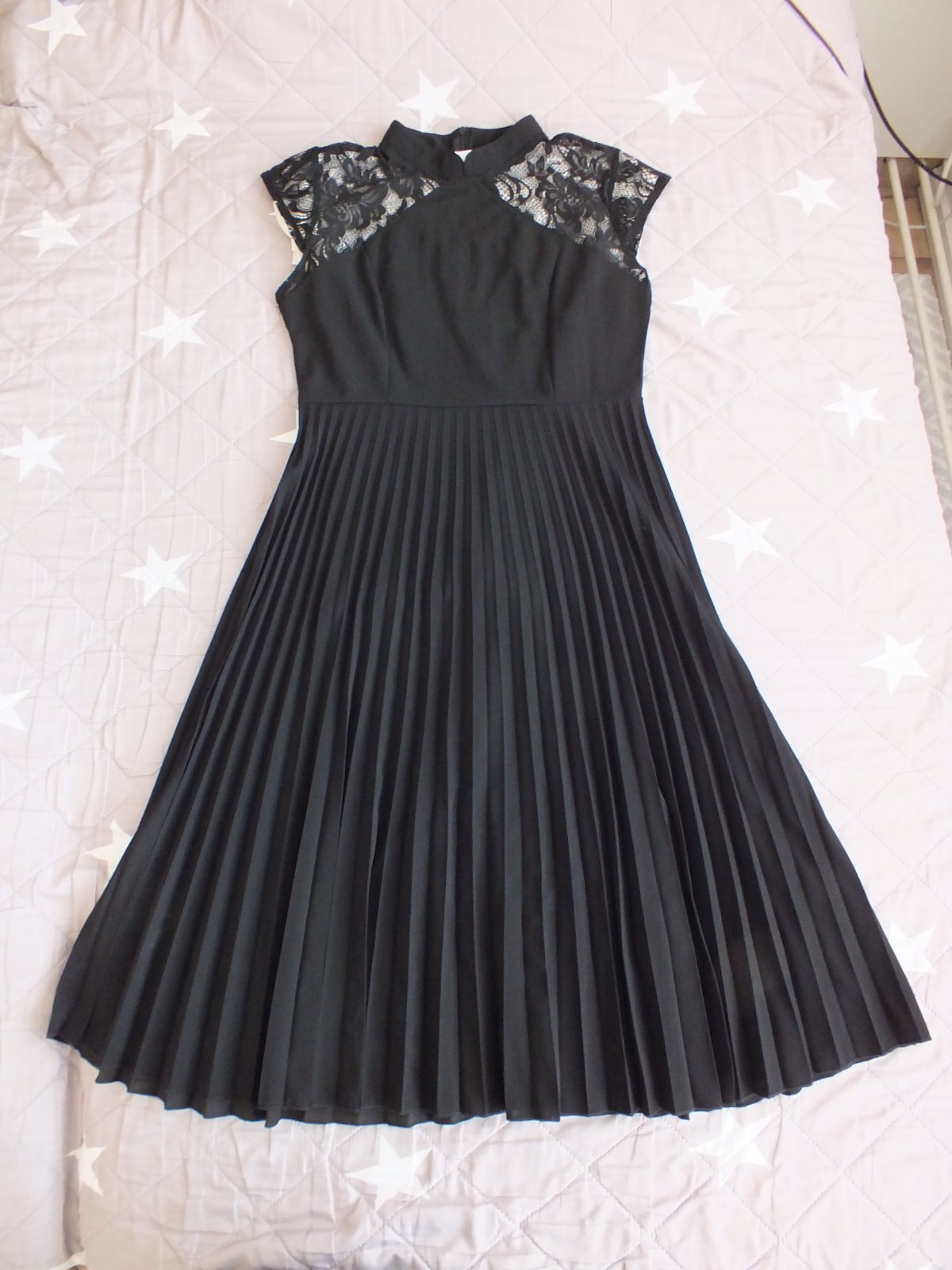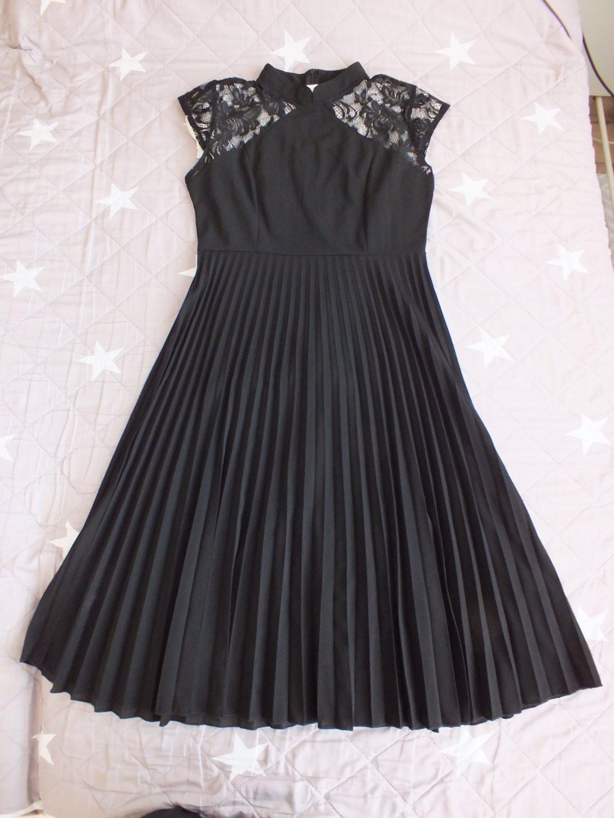 veľmi pekné elegantné šaty,nové,nenosené,super stav,super materiál,odporúčam,elastické,plisovaný spodok,hore čipka,