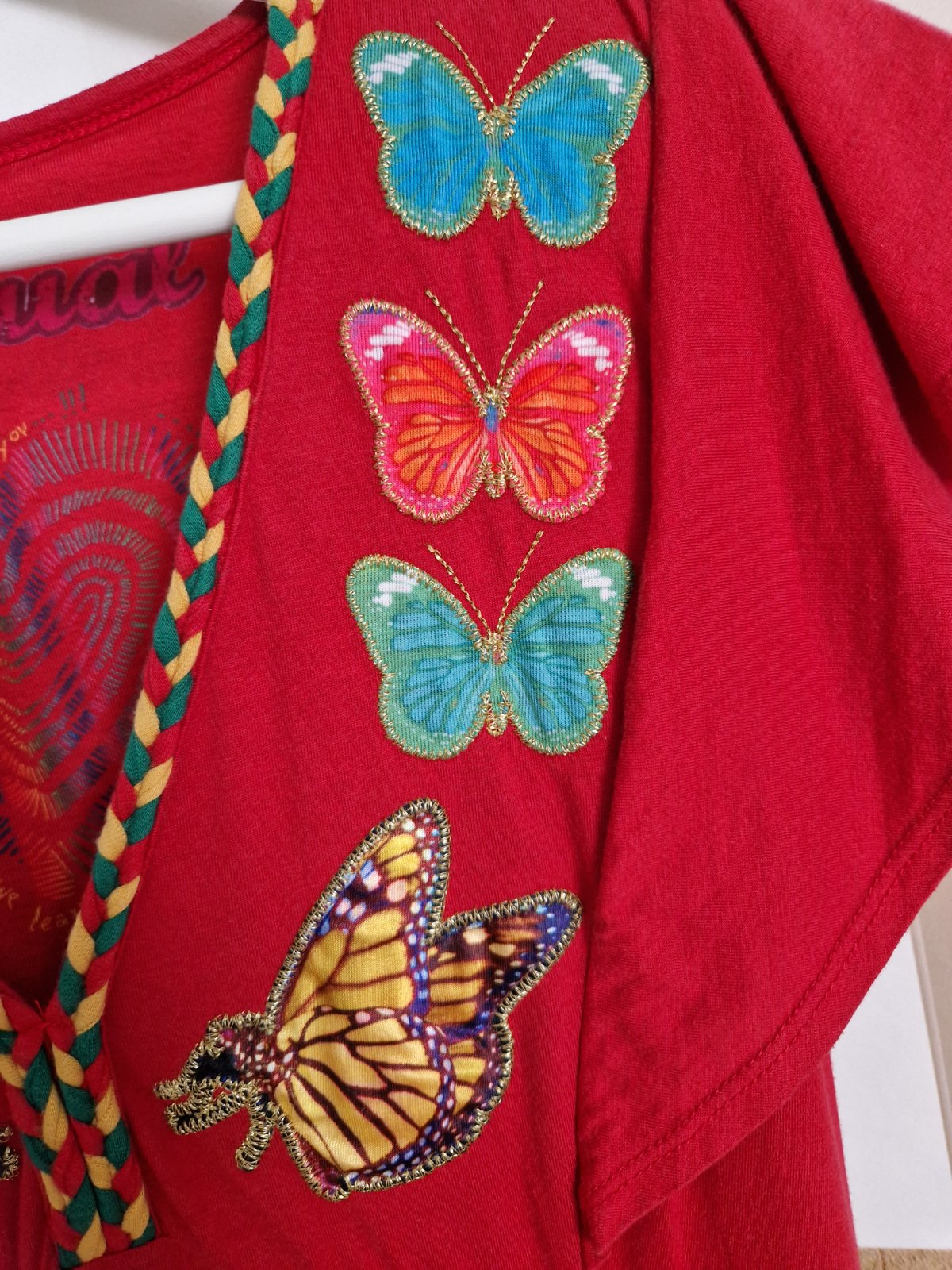 Šaty Desigual s krajkovou aplikáciou a výšivkami. Sú z tričkoviny, prispôsobia sa na telo. Celková dĺžka 101 cm šírka pod prsiami 80-90 cm