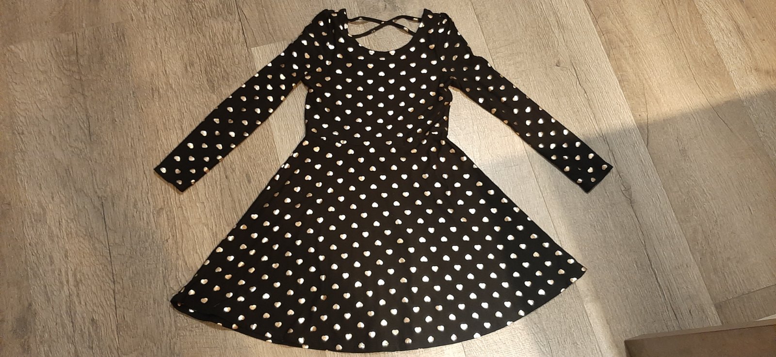 Krasne teple satocky, cierne so zlatymi srdieckami. Dlzka 72cm, sirka prsia 35 cm. Top stav