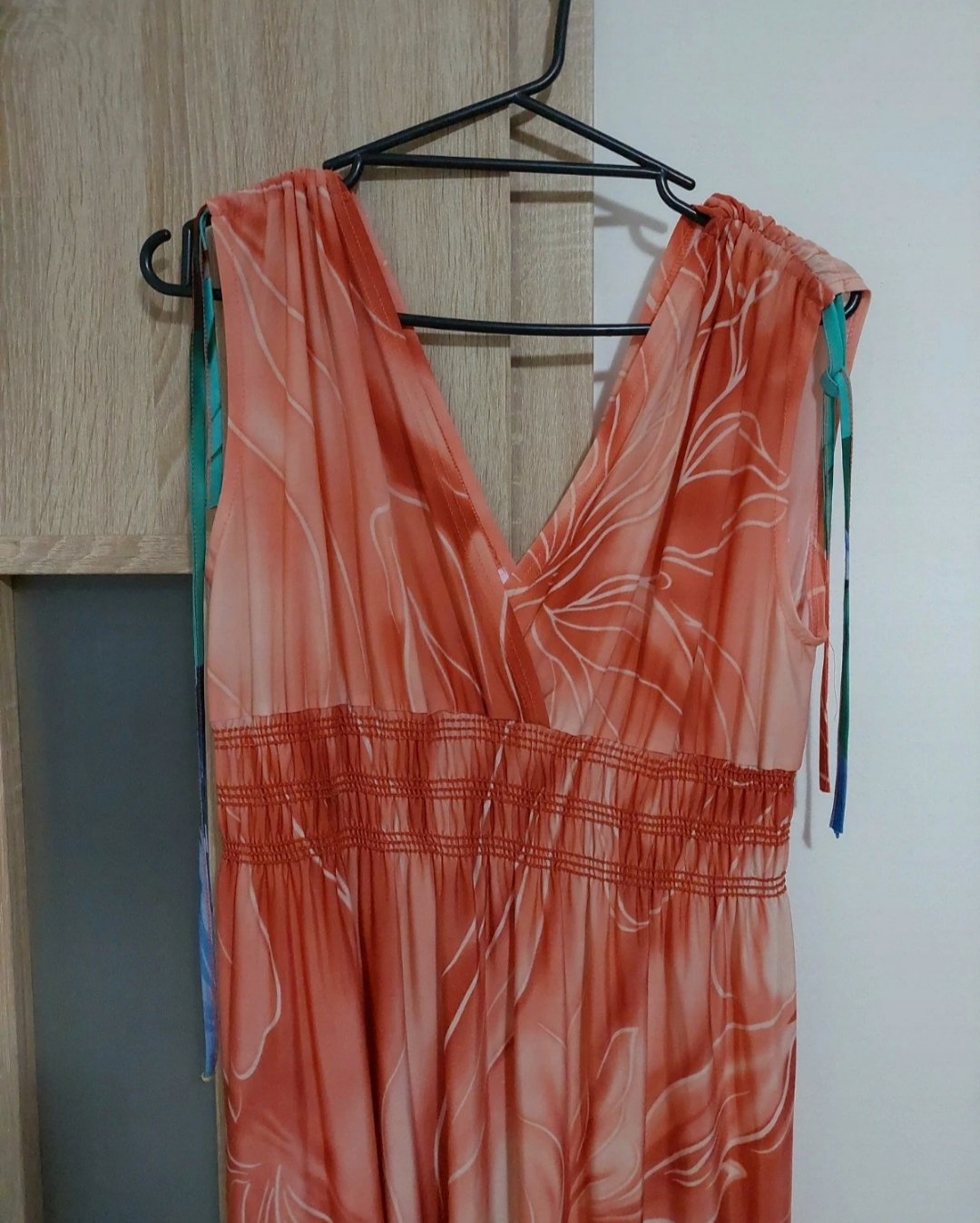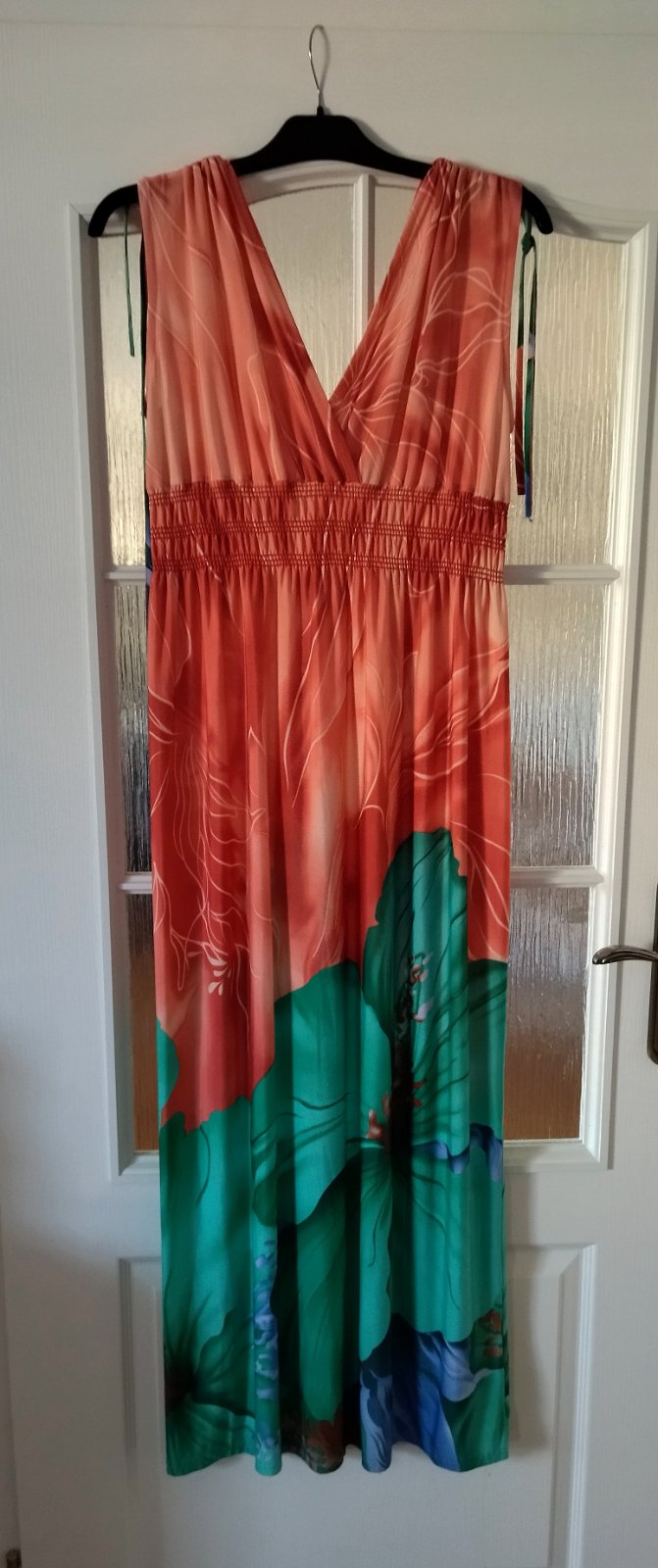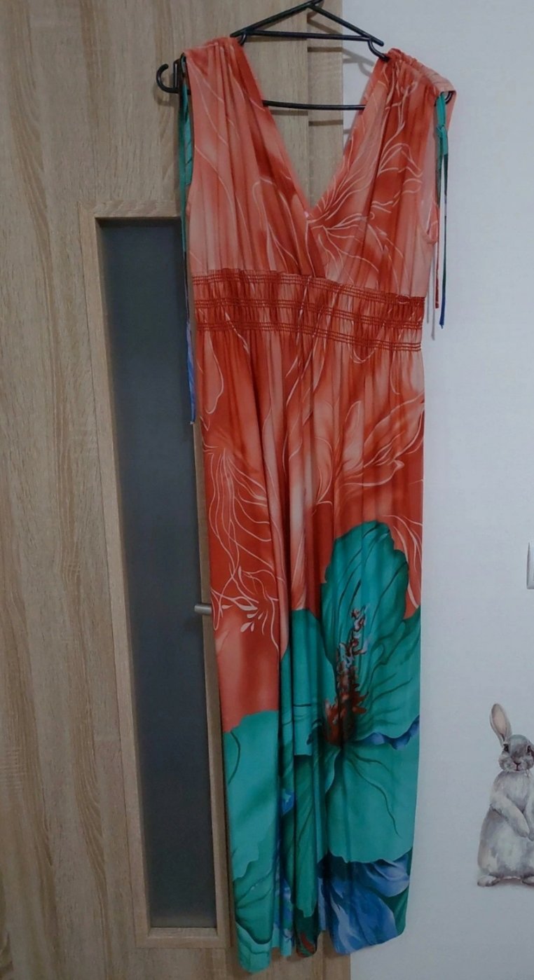 Dámske dlhé šaty, guma v drieku, veľmi tenké, nie sú elastické. Materiál: 100%tencel lyocell. Veľkosť UNI ( vhodná pre S,M,L). Krajina pôvodu: Taliansko. ROZMERY: Celková dĺžka: 125cm, Pod pazucha...