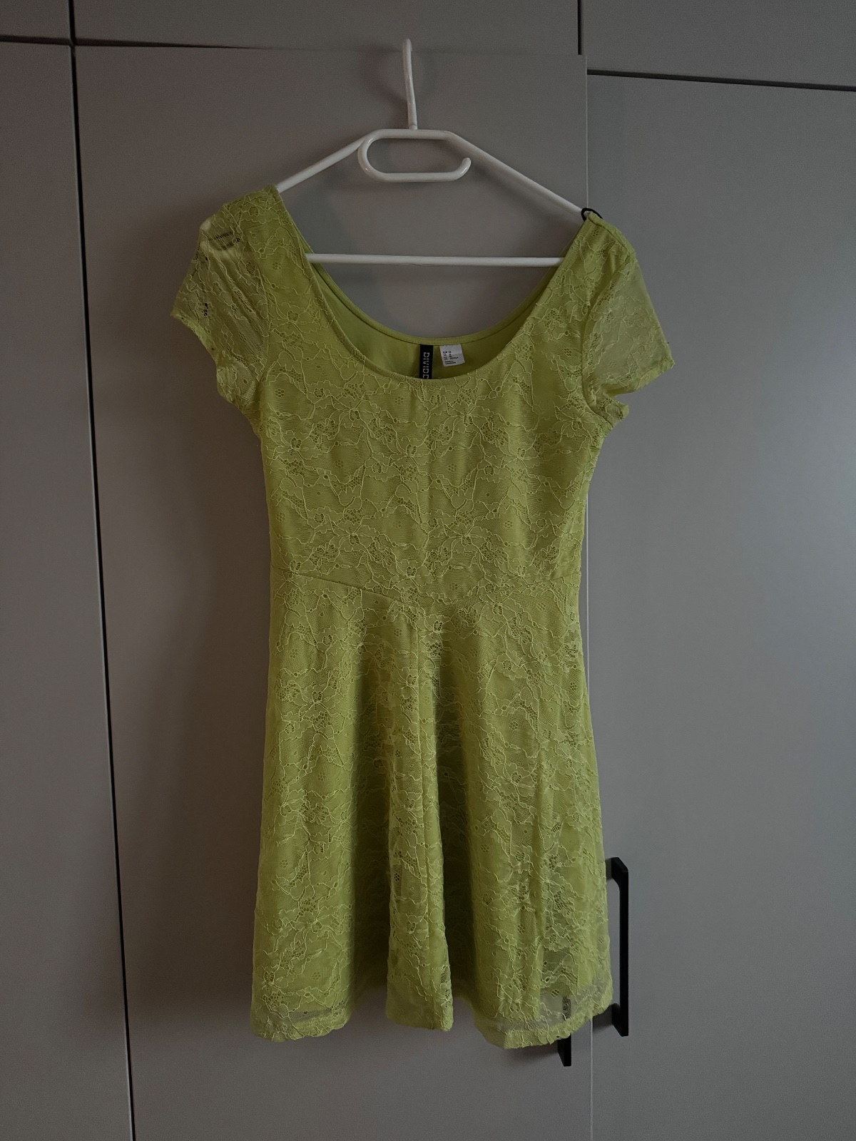 Žltozelené čipkované šatičky s ačkovým strihom, nosené bez poškodení