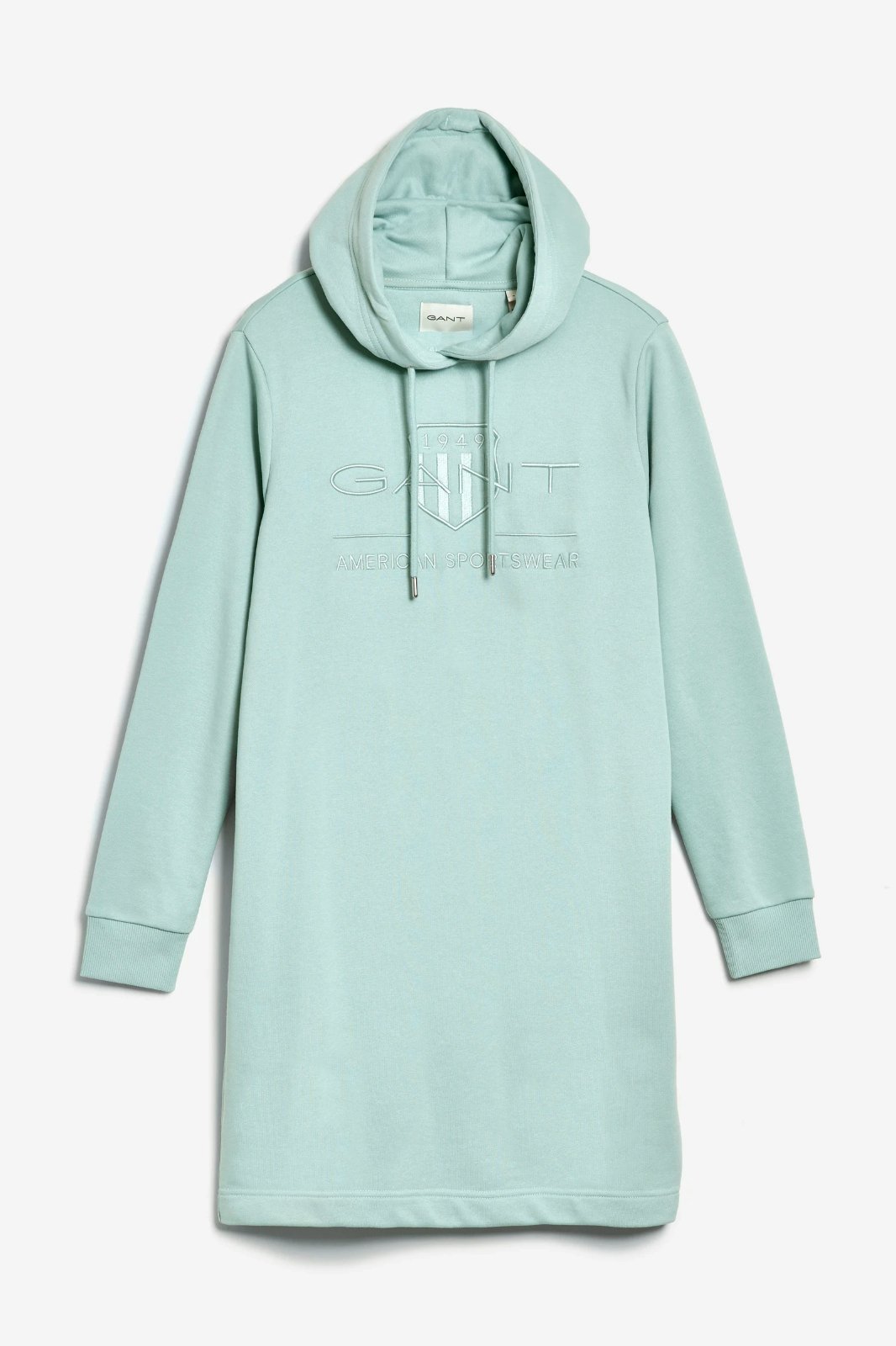 Original GANT svetríkové šaty v tmavomodrejina výfarbe z masívnym logom na hrudi a nápisom Gant vo farbe fuchsia veľkosť Sko oblečie aj m-ko