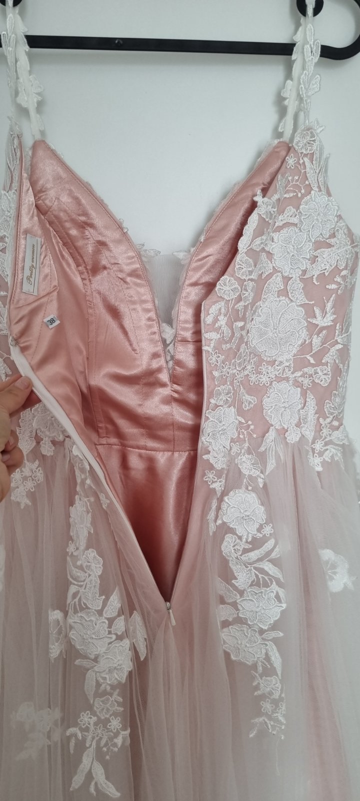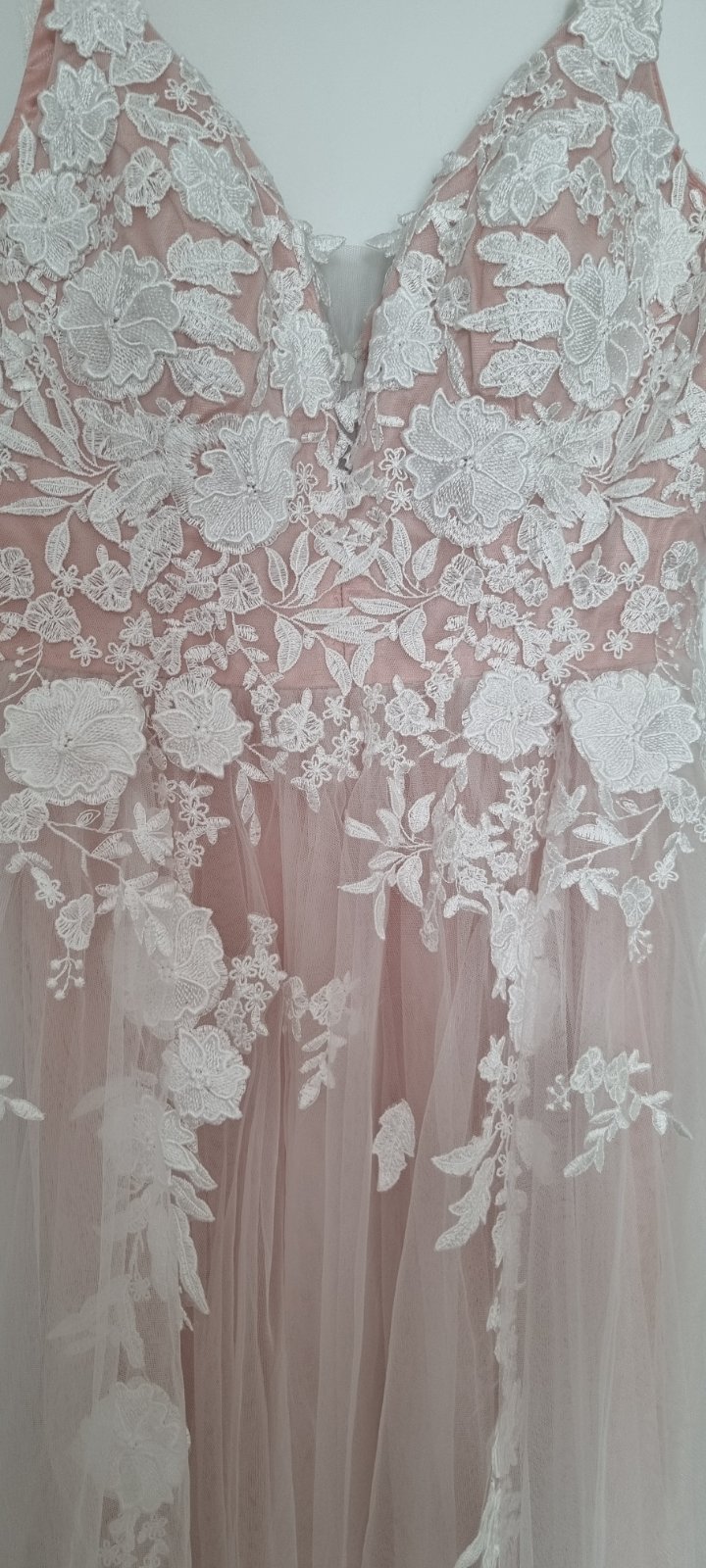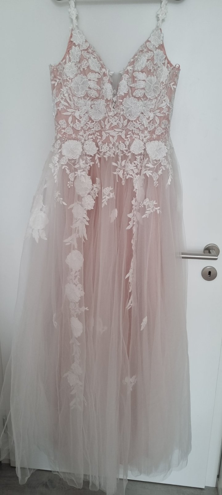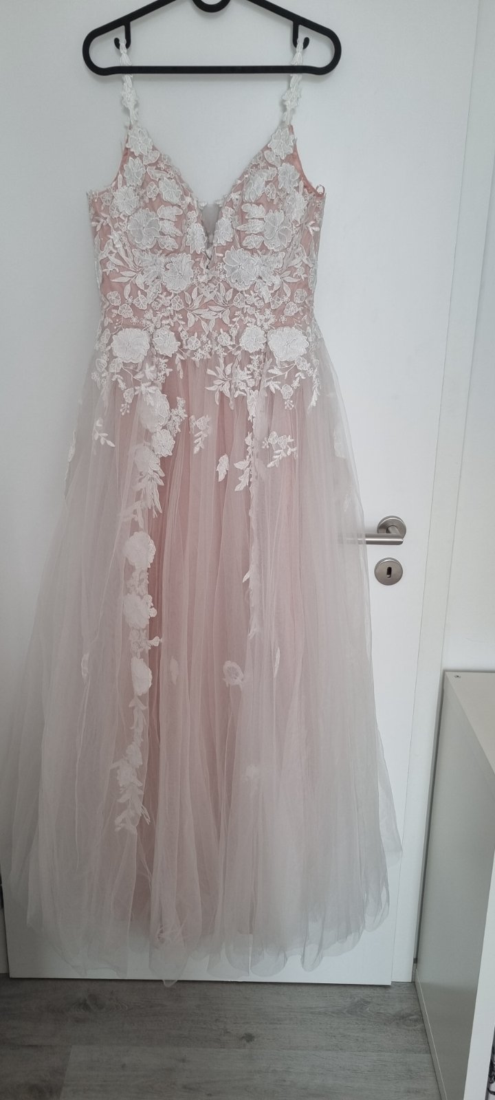 Predám nádherné svadobné šaty vo veľkosti 38. Mala som ich oblečené len raz a to na deň D. Krásne sedia na postave. Zapínajú sa vzadu na zips, háčik a očko. Cez prsia sú vystužené takže podprsenku nie je treba. Cena je bez poštovného.
