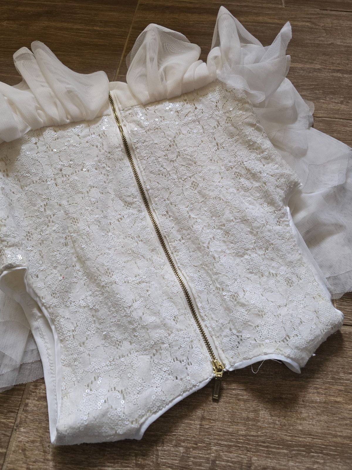 Ponúkam na predaj detske spolocenske saty velkost 6 a 10.Oblecene asi 3x bez poskodenia K satam je mozne dokúpiť bolerko.