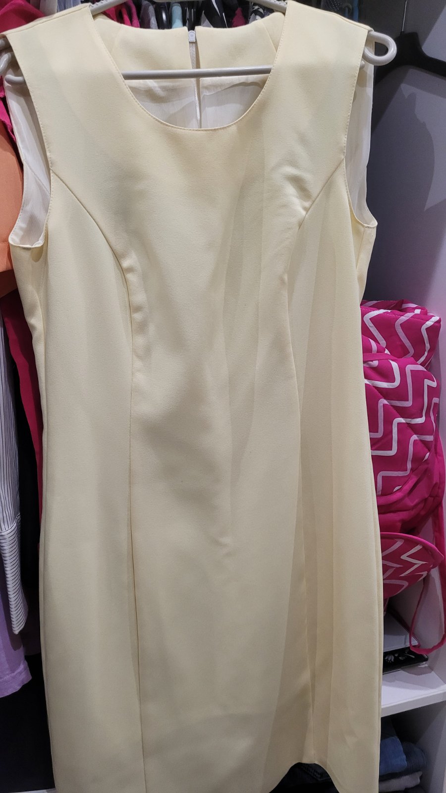 Žltý kostým s puzdrovými šatami