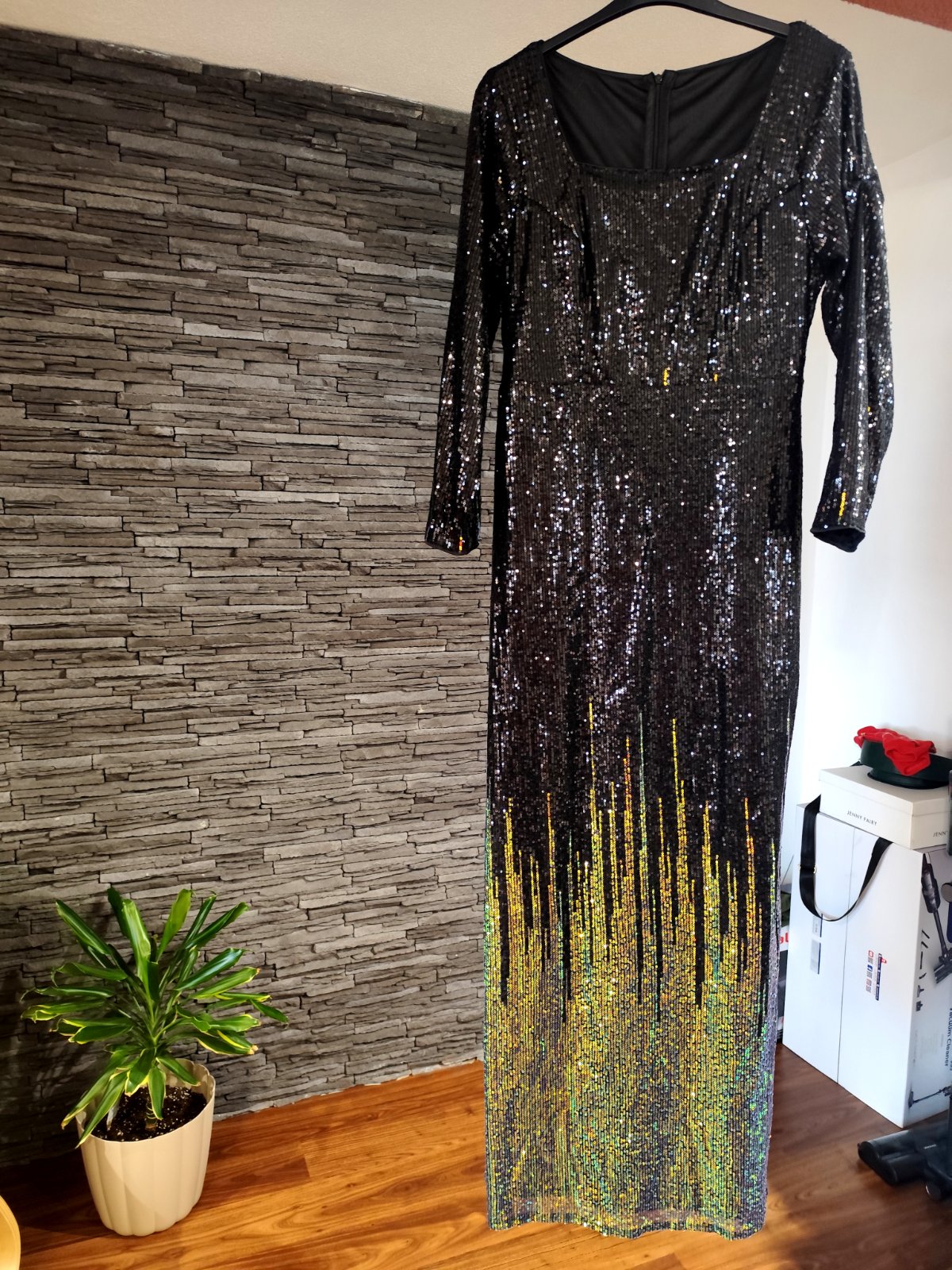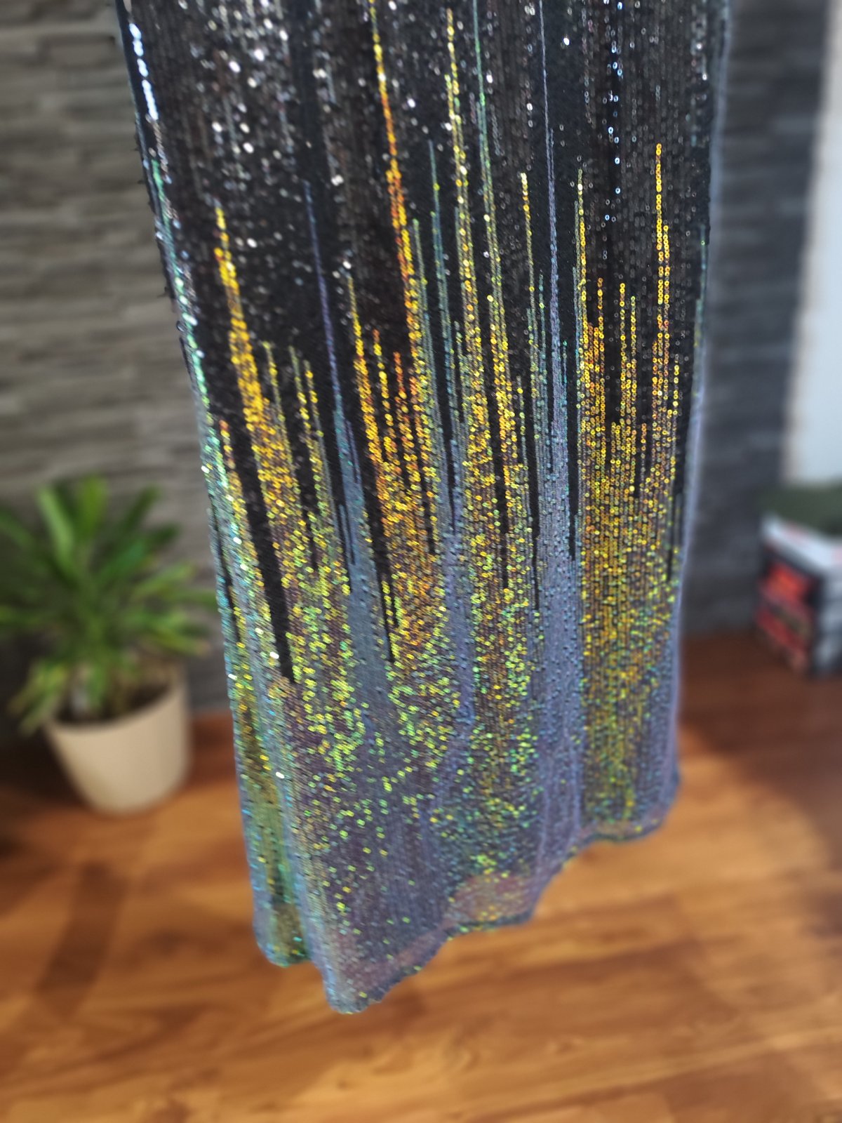 Nádherné zlaté šaty, trblietavé cele s tylu, bohatá viacvrstvá sukňa. Ozaj krásnej farby nádherne. Šaty sú nové Dlžka-146 cm, šírka-48 cm, pás-37 cm
