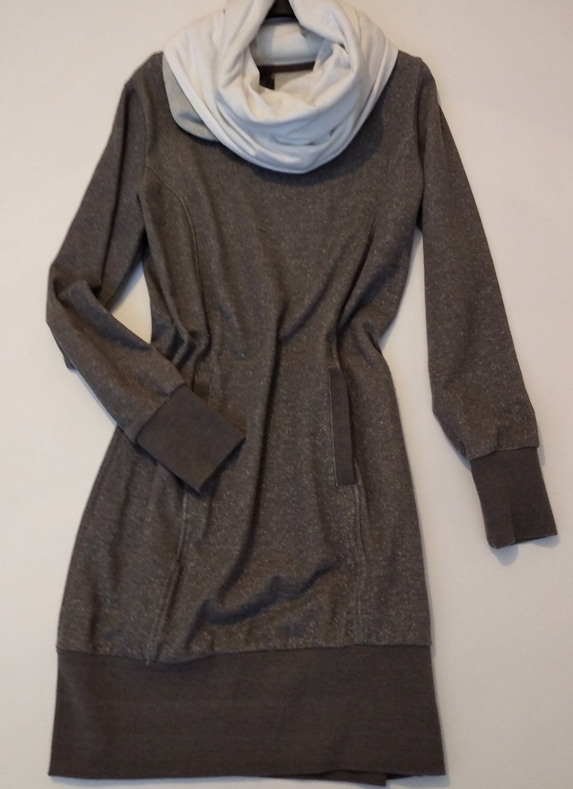 Predám tieto pekné mikinové šaty. Sú príjemného materiálu, bavlna a elastan. Skvele sa hodia k čiernym hrubším pančuškám, k tomu kotníkové čižmičky a máte super outfit. Nosila som k nim koženú krátku bundu. Mala som ich na sebe párkrát, sú mi už veľké, preto ich posúvam ďalej. Posielam cez Packetu, alebo poštou. Plus poštovné.