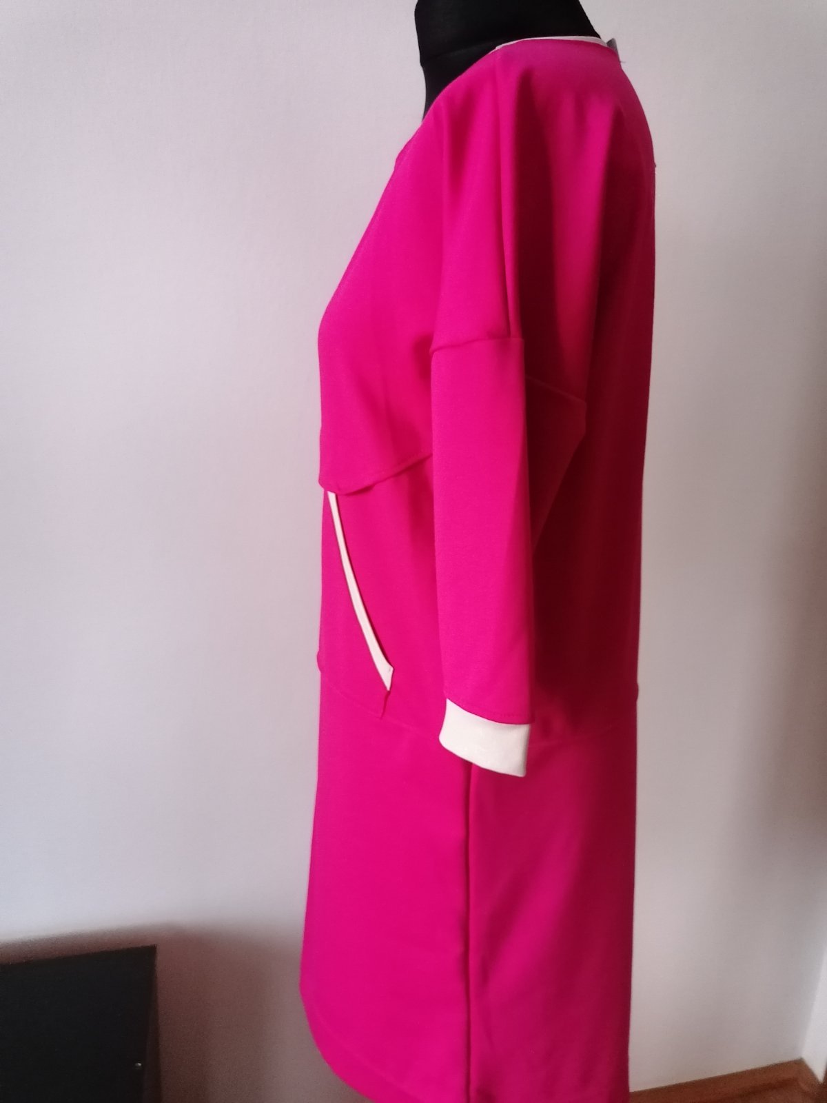 V peknom stave, veľ. 42 sedia na M/L d-85 cm, š-50*2 cm /ale padne to dole, pekne sedia na M/L/ Ja som ako M nosila s opaskom a ako L bez opasku, voľný strih Predávam bez opasku Nadčasové, 3/4 ruká...