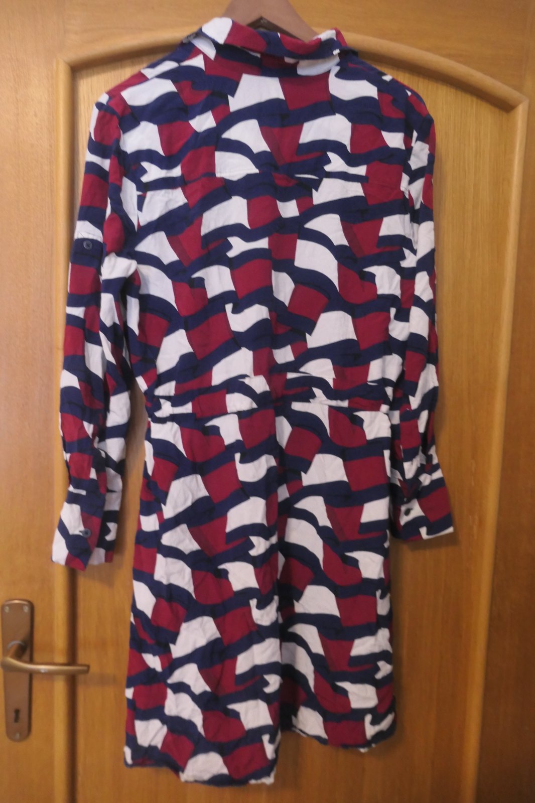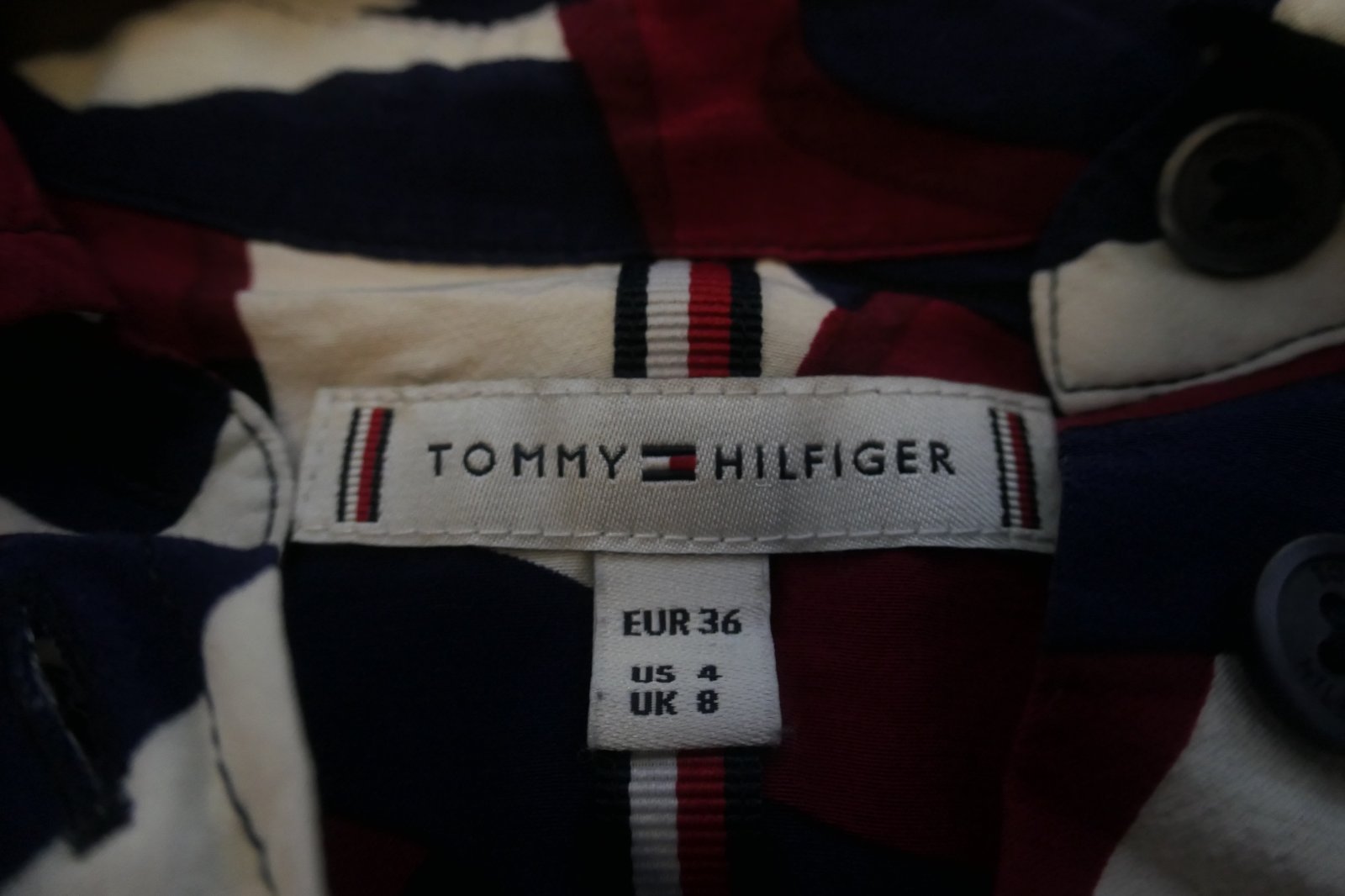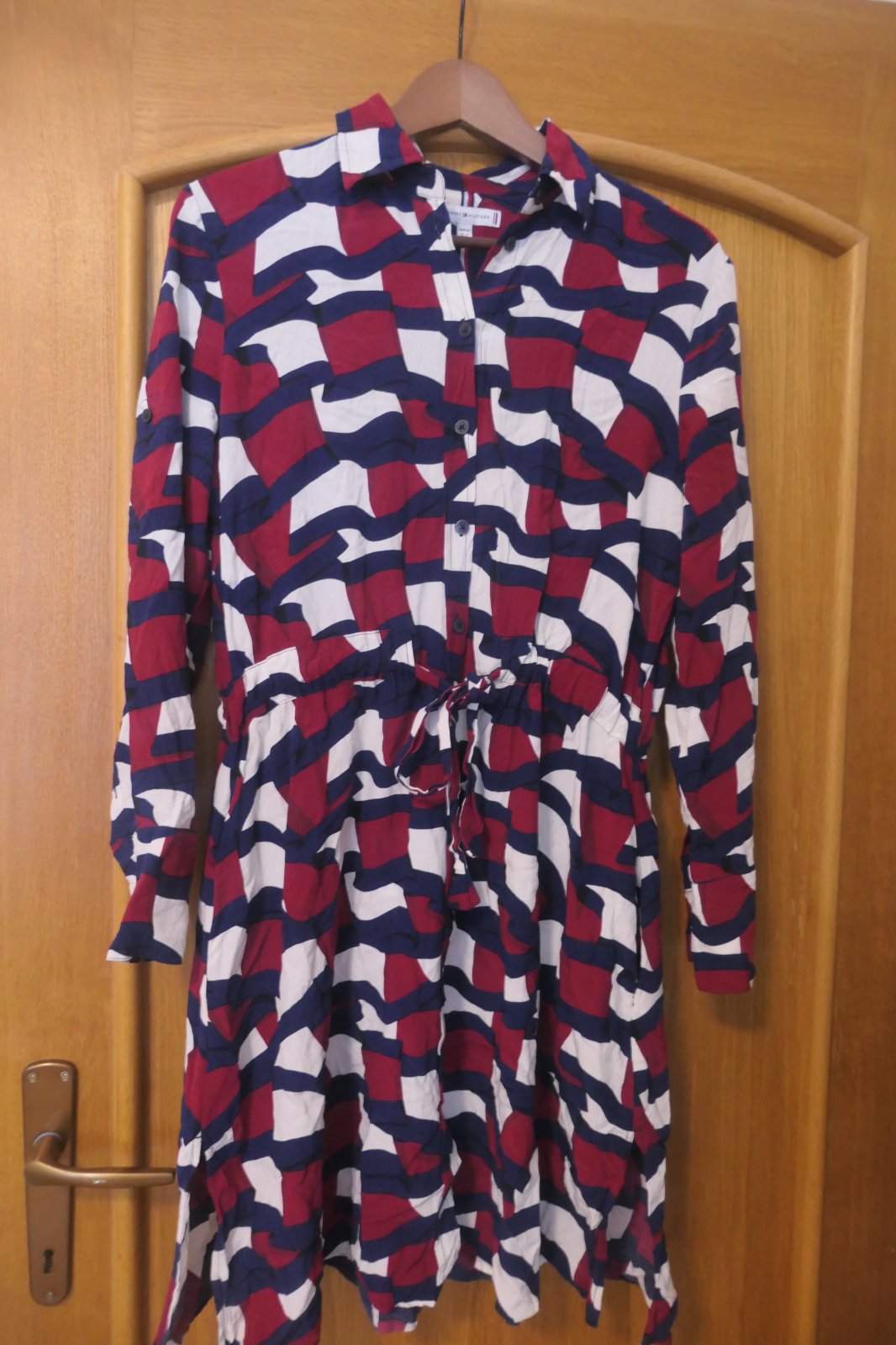 ikonicke Tommy Hilfiger krasne saty v TH farbach, koselove, pas aj volny aj sa da stiahnut, rukavy roll=up, dole kovovy TH znak, perfektne, pohodlne, stylove, moderne, top stav, bez chyby, velkost 36 ale sedia aj na 38