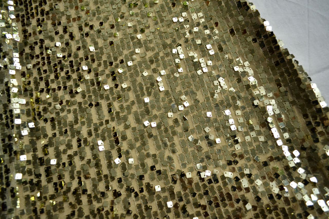 Šaty so zlatými flitrami, zadný diel je béžový, látkový, nosené, veľmi dobrý stav. Bez poškodenia. Udávaná v 32/34, ja som nosila ako 36 preto aj dávam do tejto veľkosti. Sú veĺmi elastické 95 % viskóza, 5 % elastan.