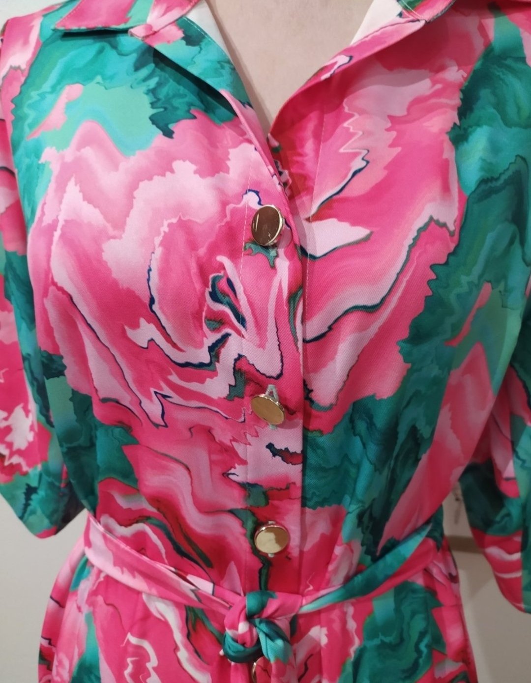 Kvetovane košeľové šaty,padavky kvalitný materiál,veľ uvedená S ,sedia skôr naM ,pc60€