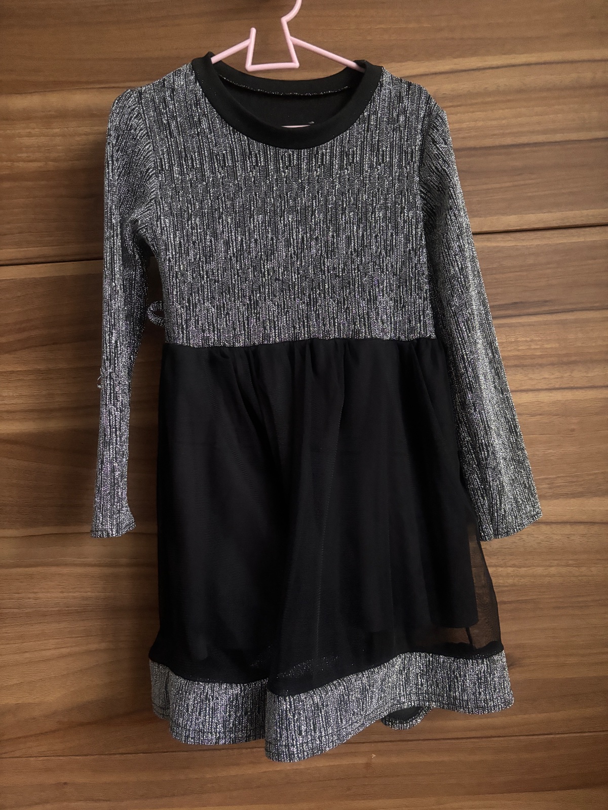 krasne šaty veľmi vhodne na vianoce či silvestra. majú zaujímavo riešenú sukňu, spodnicka je z príjemnej látky (tuším zamat, vidieť štruktúru na foto), veľkosť udaná nie je ale dcéra ma 116 a sedí super. oblečené asi 3-4x. na cene som ochotná sa dohodnúť