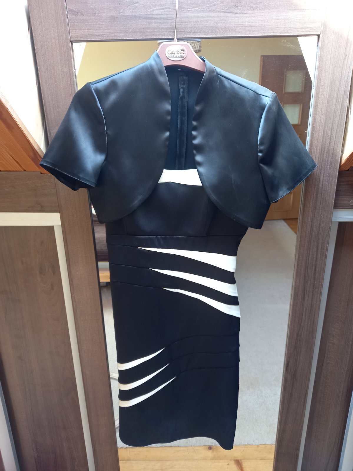Puzdrove spolocenske saty s bolerkom, zo saténu. Zapinanie zips na chrbate. Oblecene 2x, výborný stav. V pripade zaujmu premeriam.