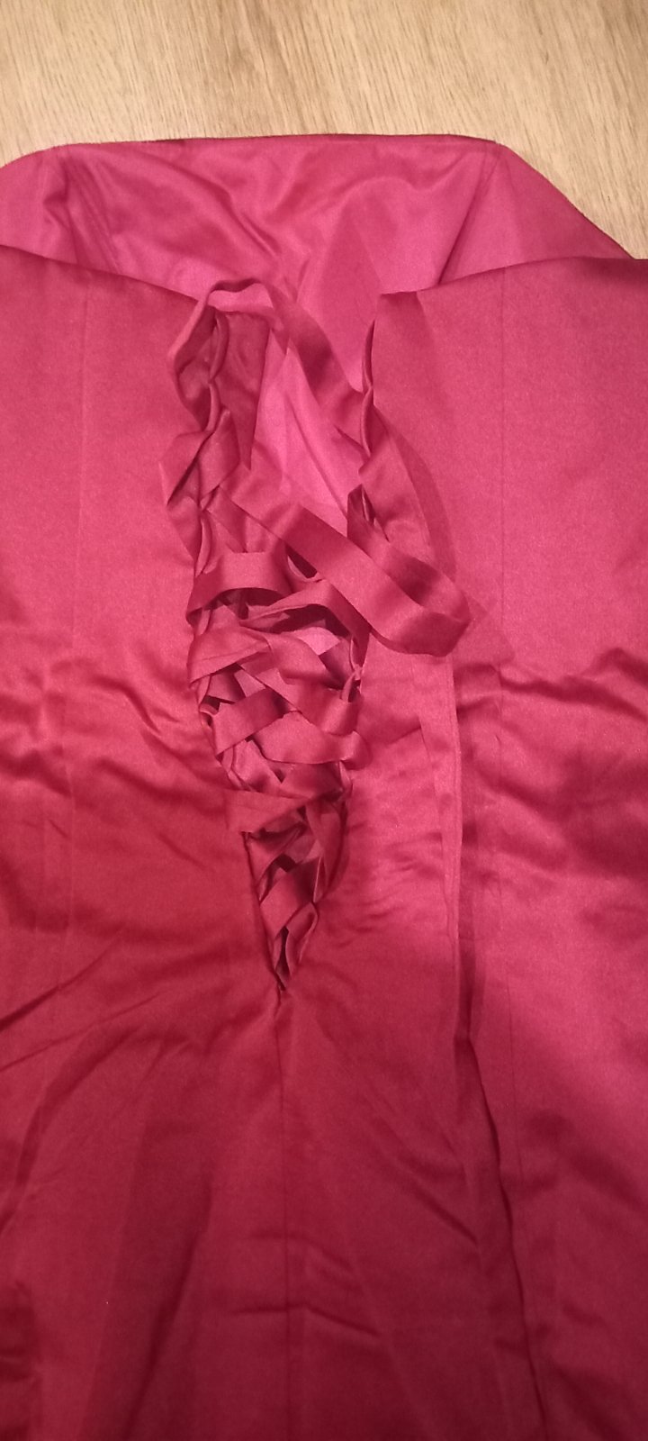 nenosené ešte s visačkou UK 16/18 material: 55 % rayon 45 % polyester - velmi príjemné nadotyk a makkučké, nekrcive farba vínová vhodné na svadbu, ples miery: dlžka celkom 145 cm, cez prsia 55 cm ...