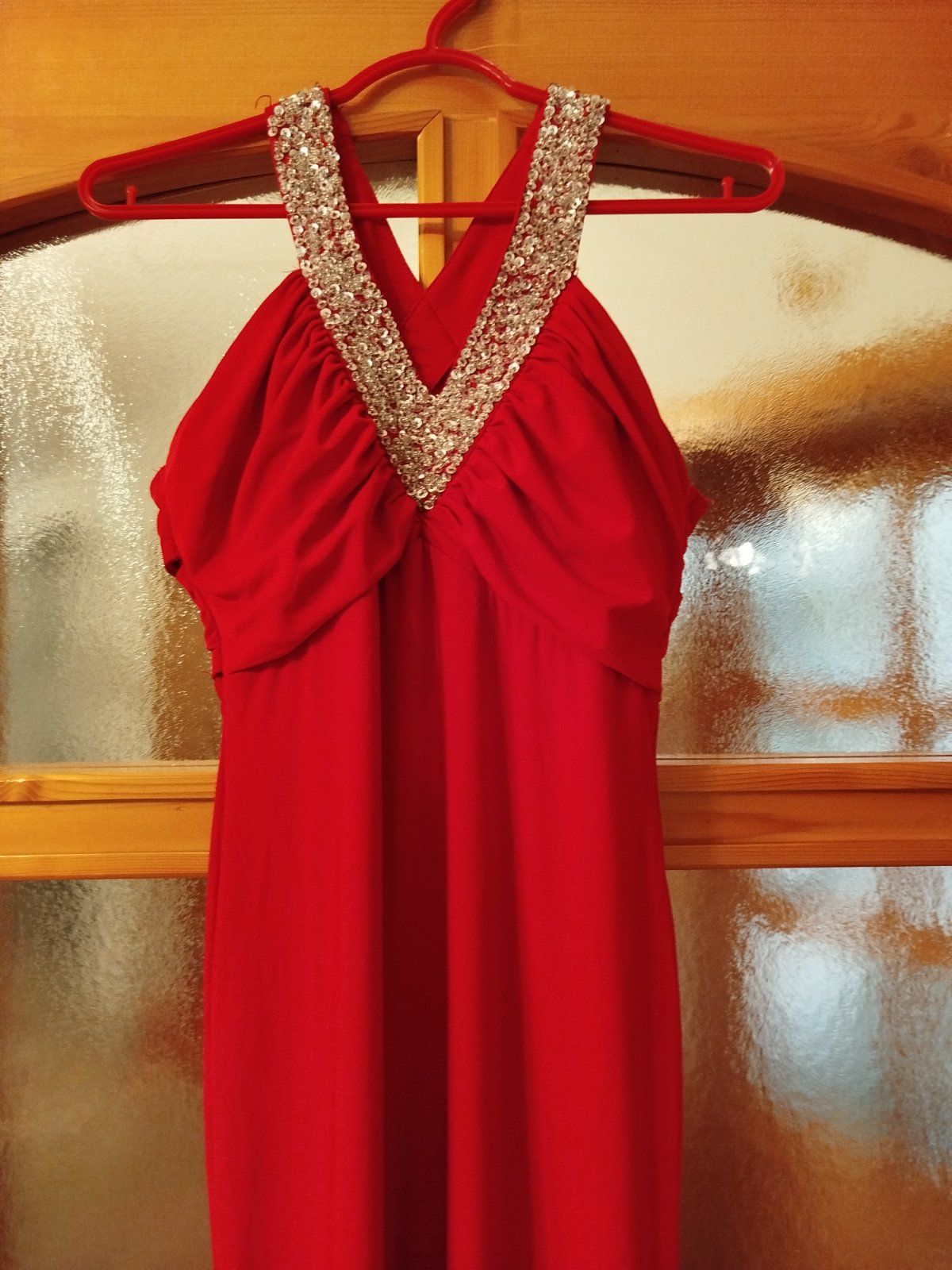 Elastické spoločenské šaty s korálikmi v dekolte,dole sa trocha rozširujú.Bez chyby,ako nové.