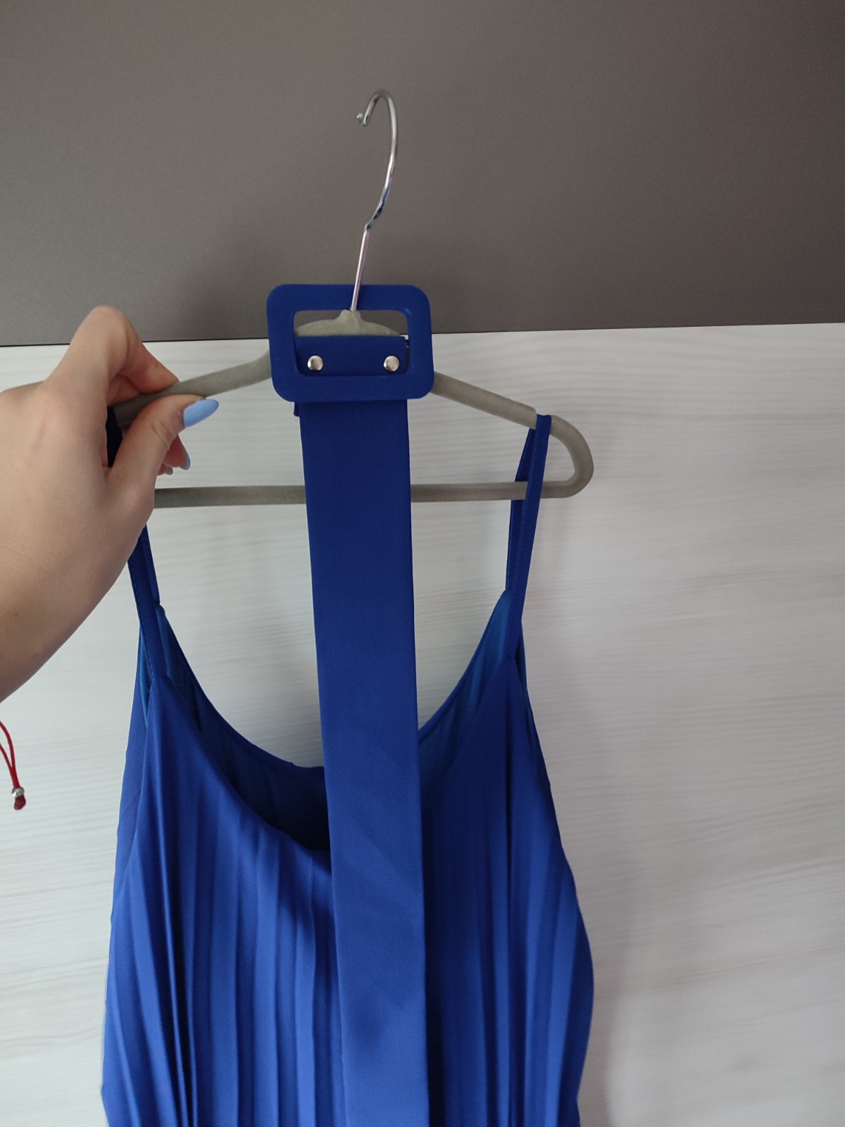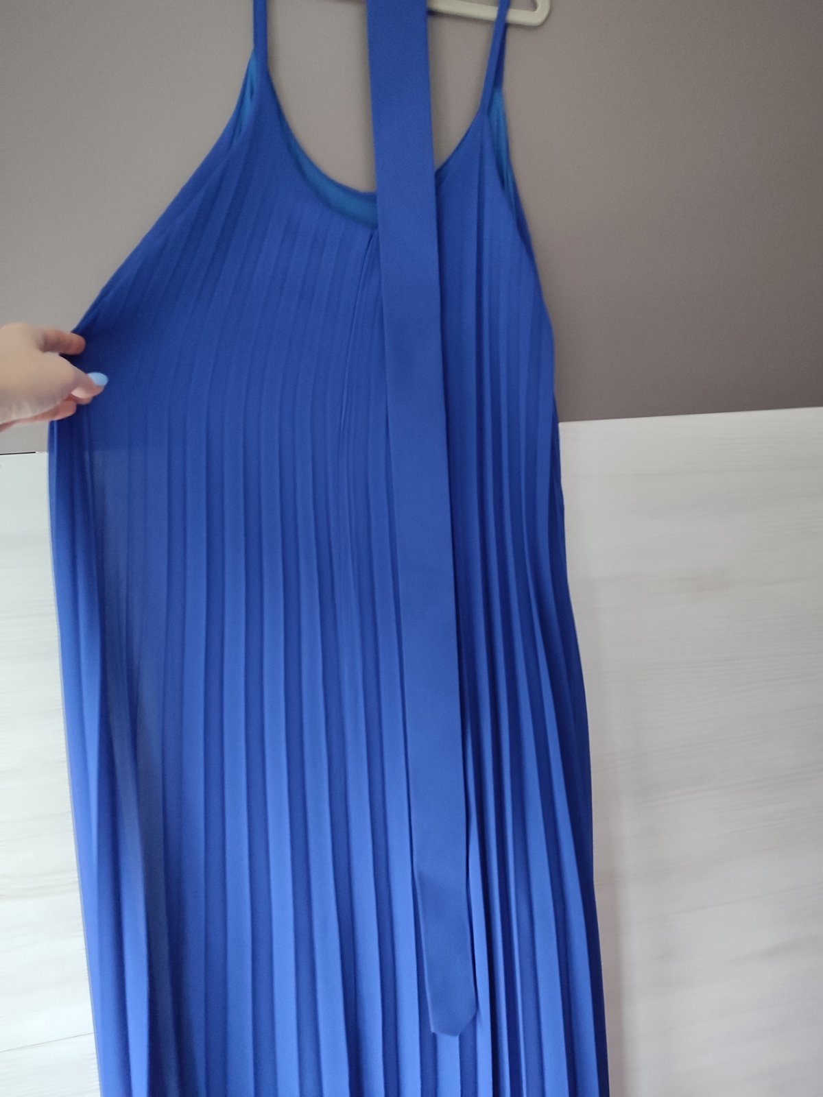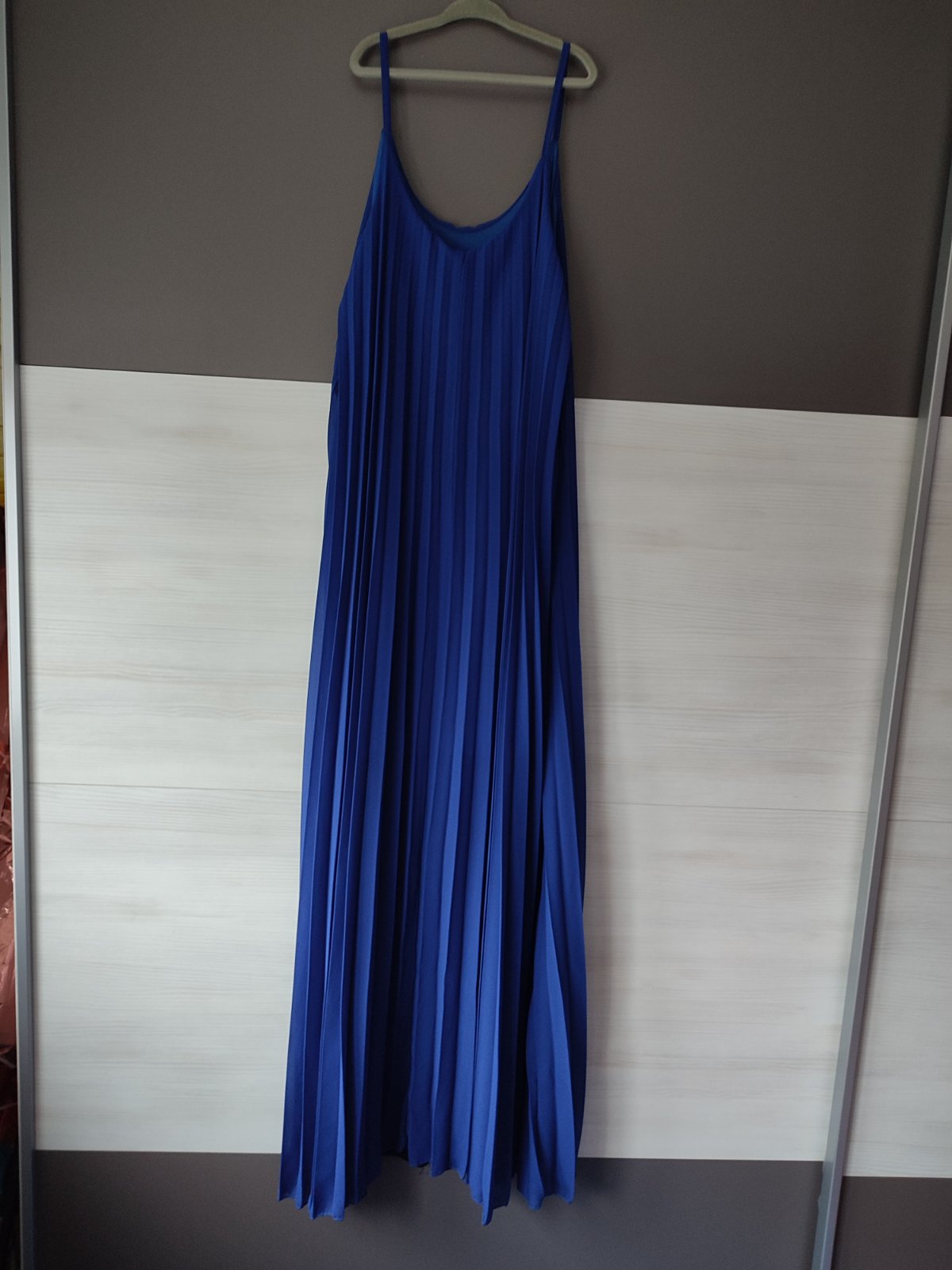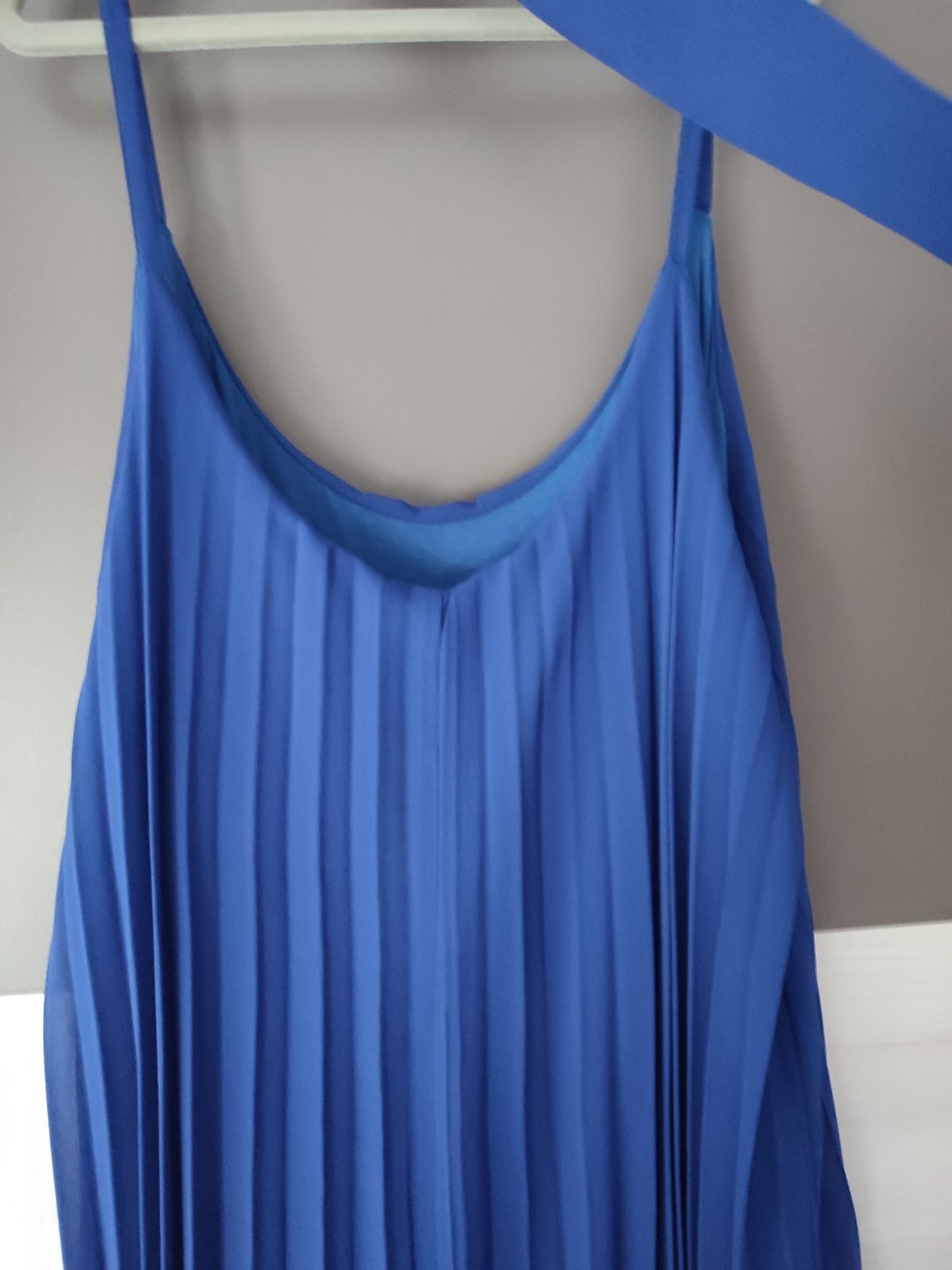 Ponúkam na predaj plisovane kráľovsky modrej farby s opaskom, veľ. Uni, celkova dlzka je 140 cm a sirka je max 51 cm, oblečené raz.
