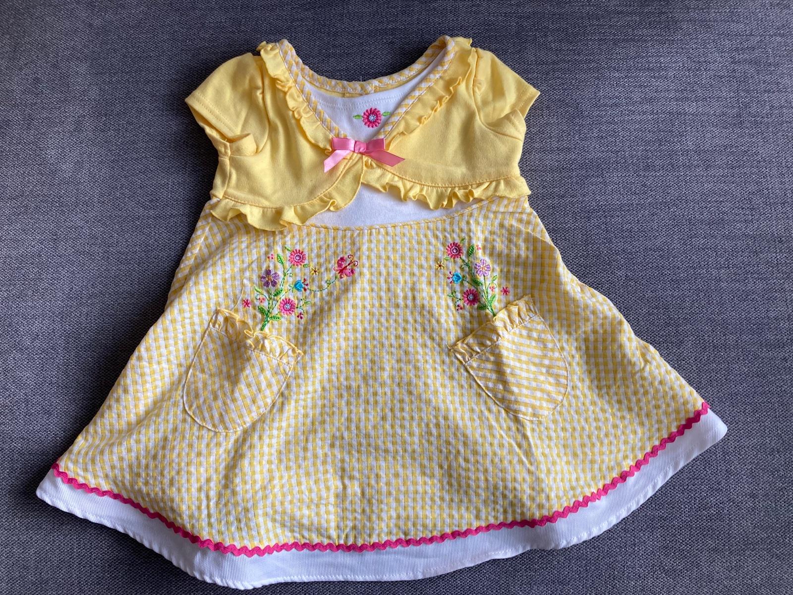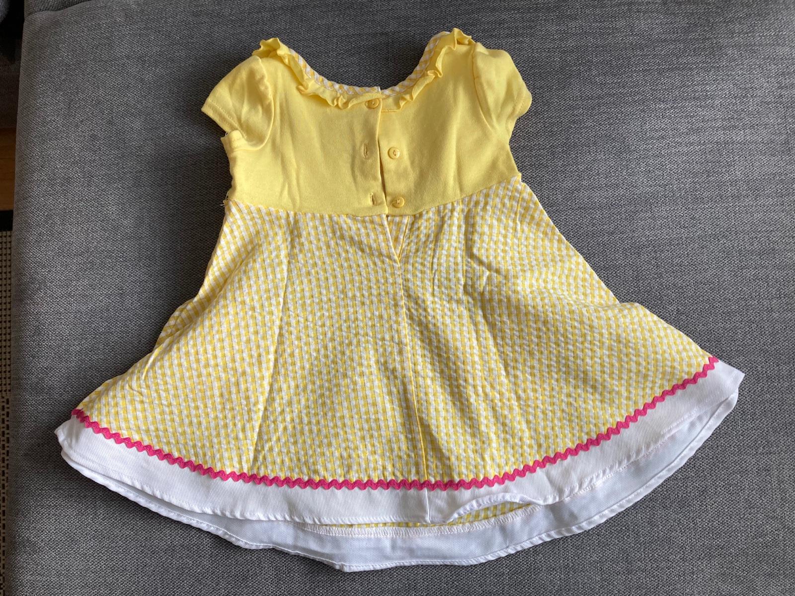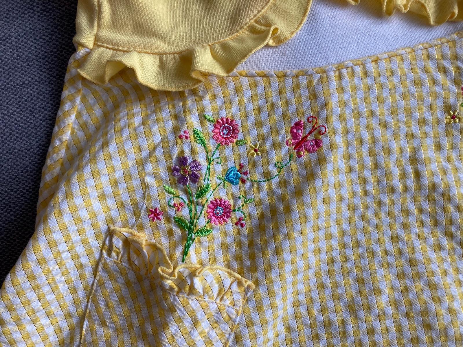 Krásne šaty na leto pre malú parádnicu. Šaty majú zaujímavé detaily - vyšité kvietky. Kupované v USA, značka Youngland Baby, veľkosť 18 mesiacov.