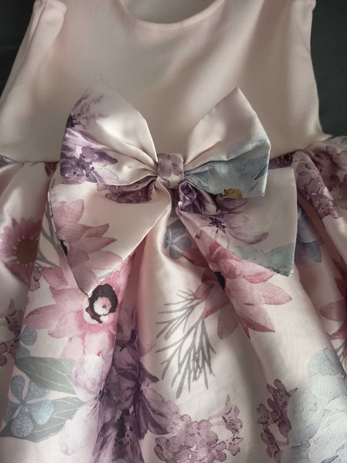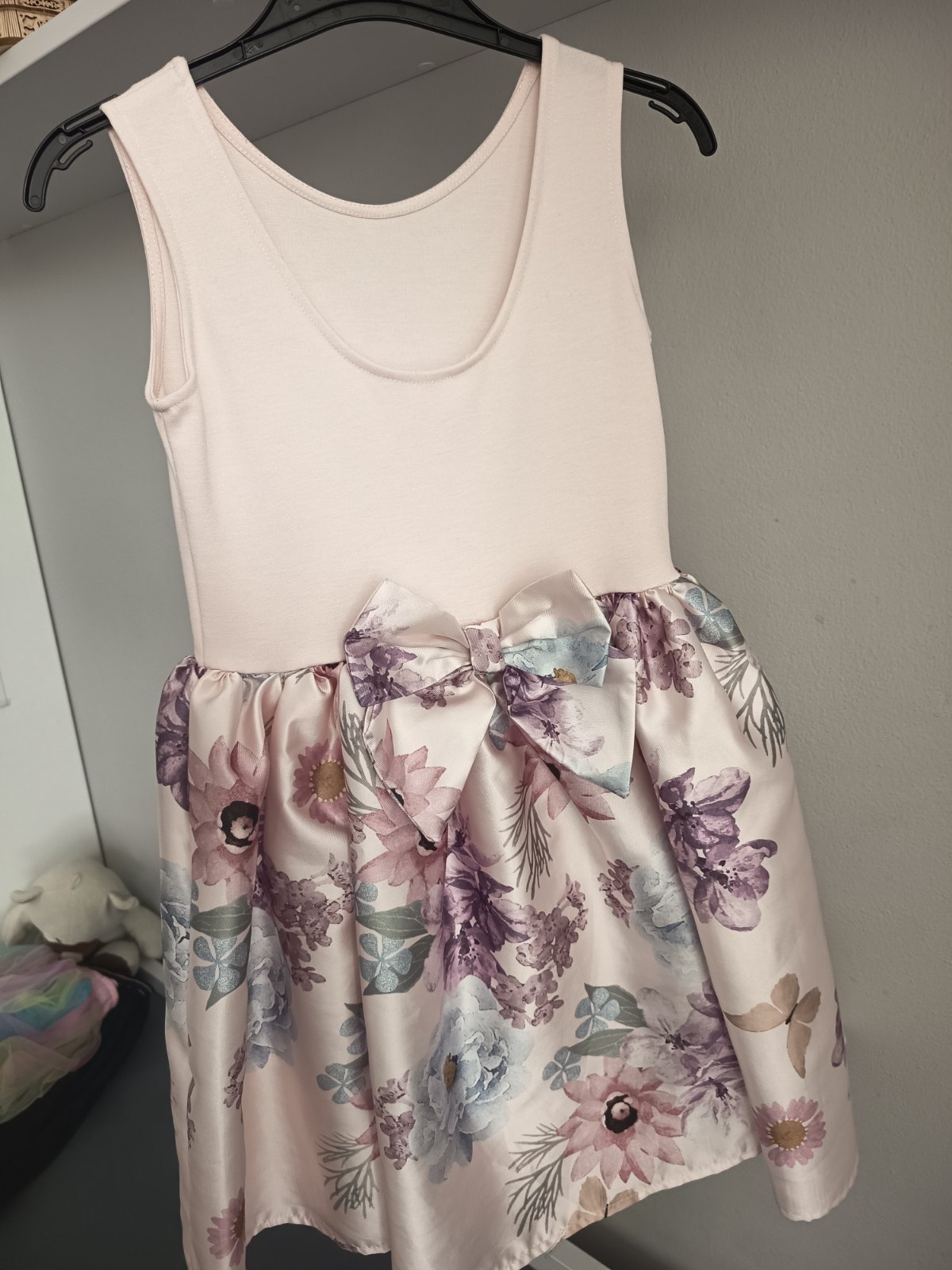 Nádherné šatky, veľkosť 121/128, vzadu majú mašľu, majú spodničku, sú vo veľmi peknom stave, dĺžka 70cm, šírka 31x2cm