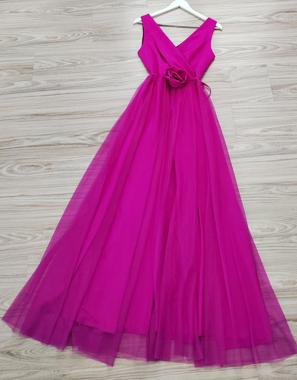 Krásne šaty vo fuksiovej farbe vo veľkosti S, cena 55 eur.