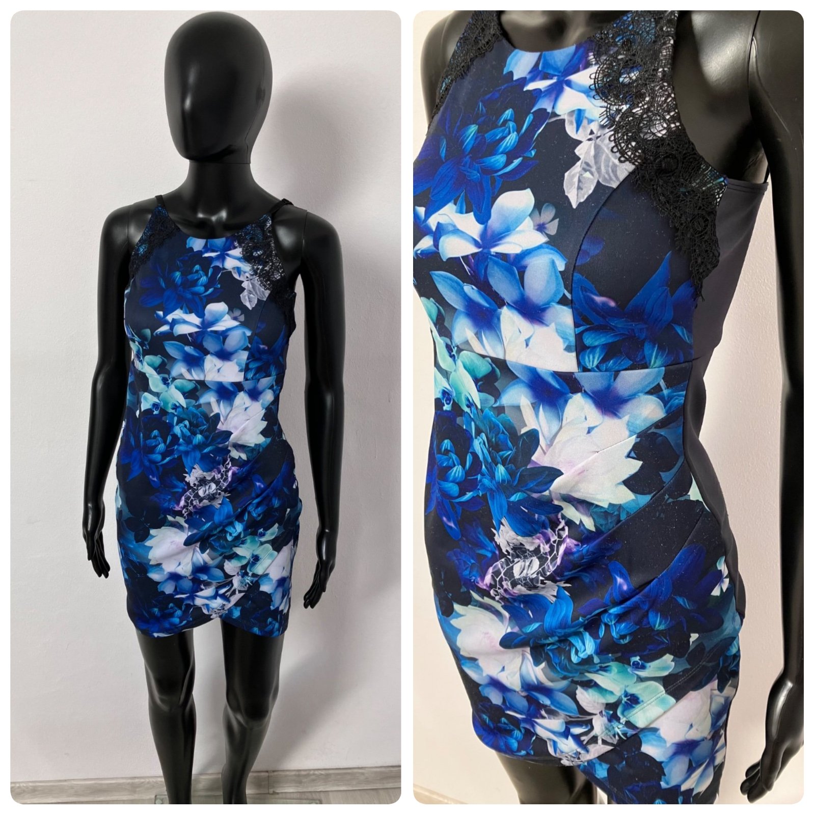 Šaty na tenké ramienka na bežné nosenie ale vhodné sú aj na príležitosť, zapínanie vzadu na zips, elastické, materiál 95%polyester,5% elastan - 100%nylon/polyamid, veľkosť cca S.