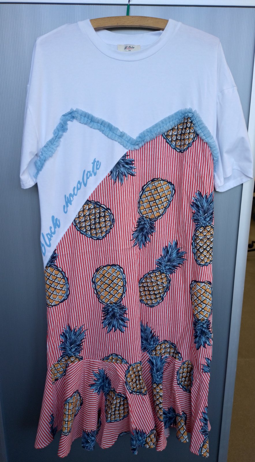 Pekne saty predĺžené tricko na spodu čipka 2x oblečené šírka v kľude 2x43 celková dĺžka 76 viac odpoviem