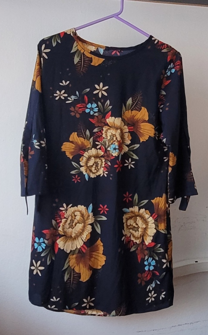 Šaty sú len opraté, príjemný nekrčivý materiál, voľný strih, dĺžka rukáva sa dá regulovať