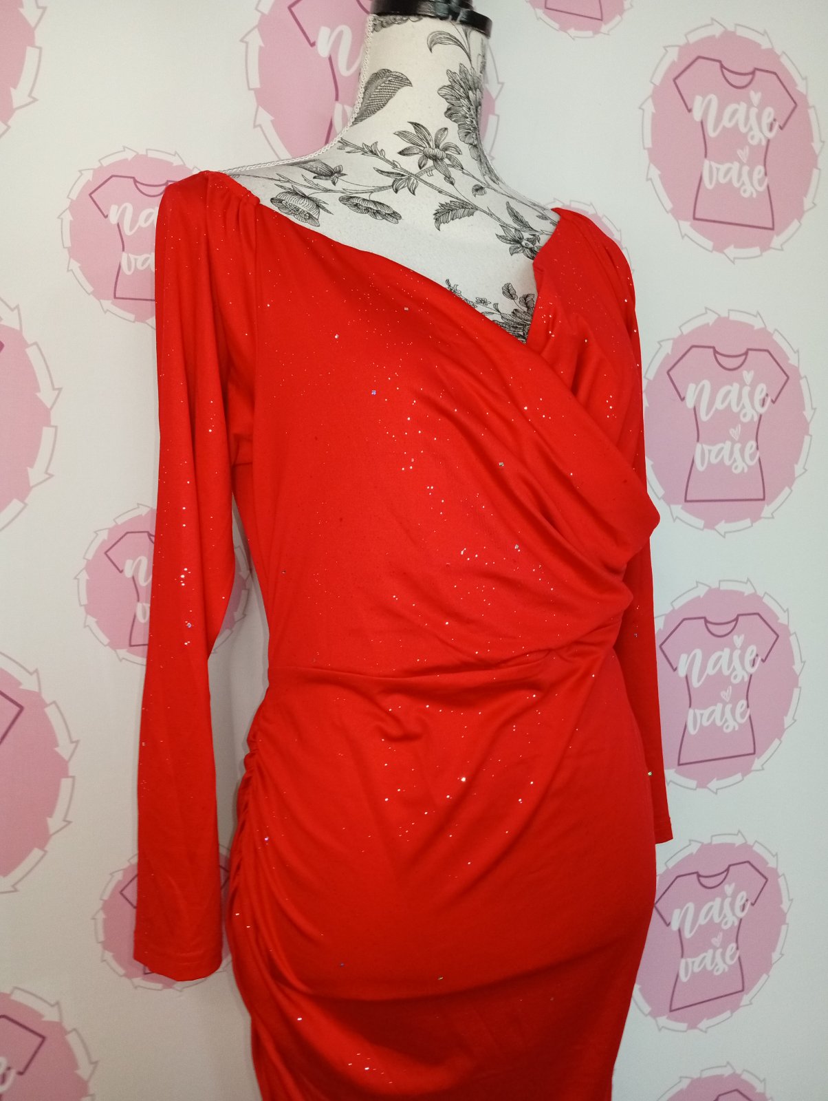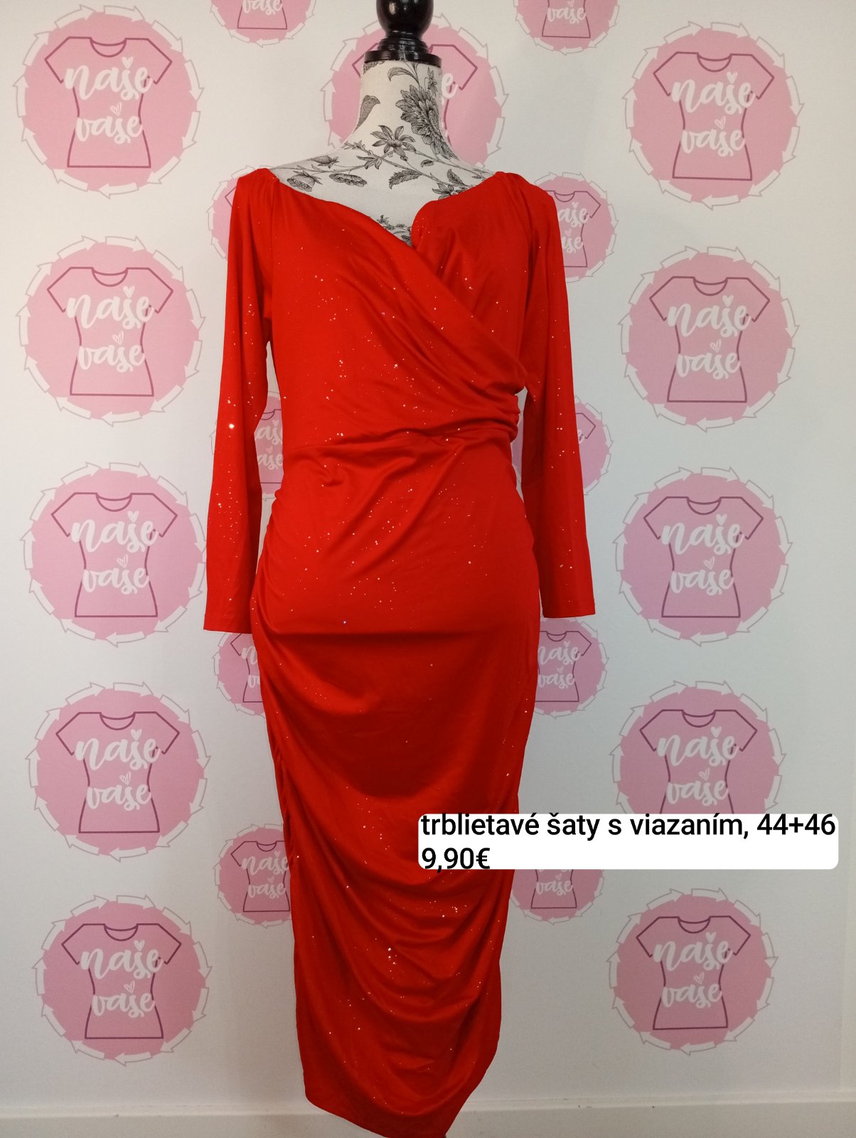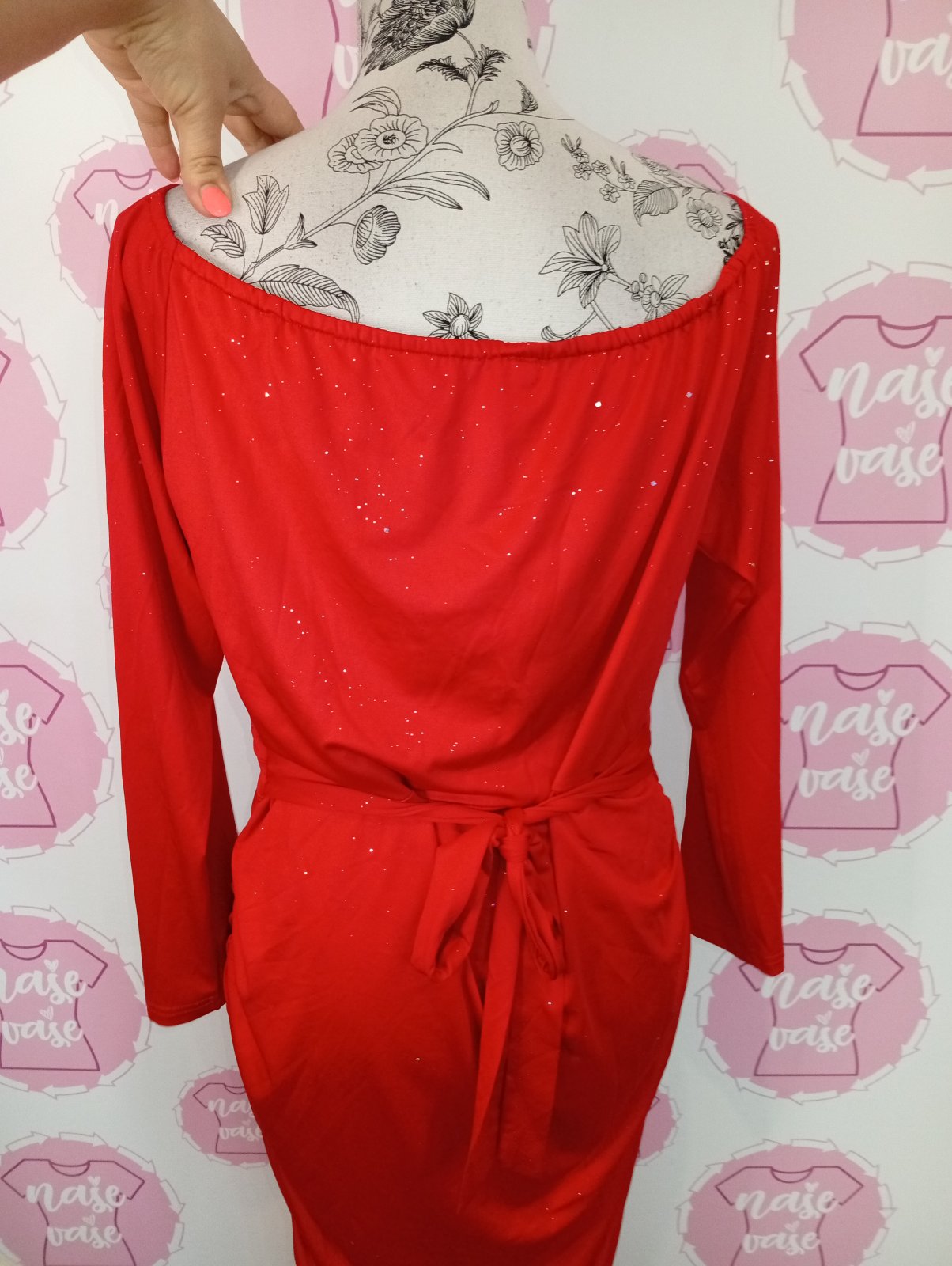 Červené trblietavé šaty s viazaním