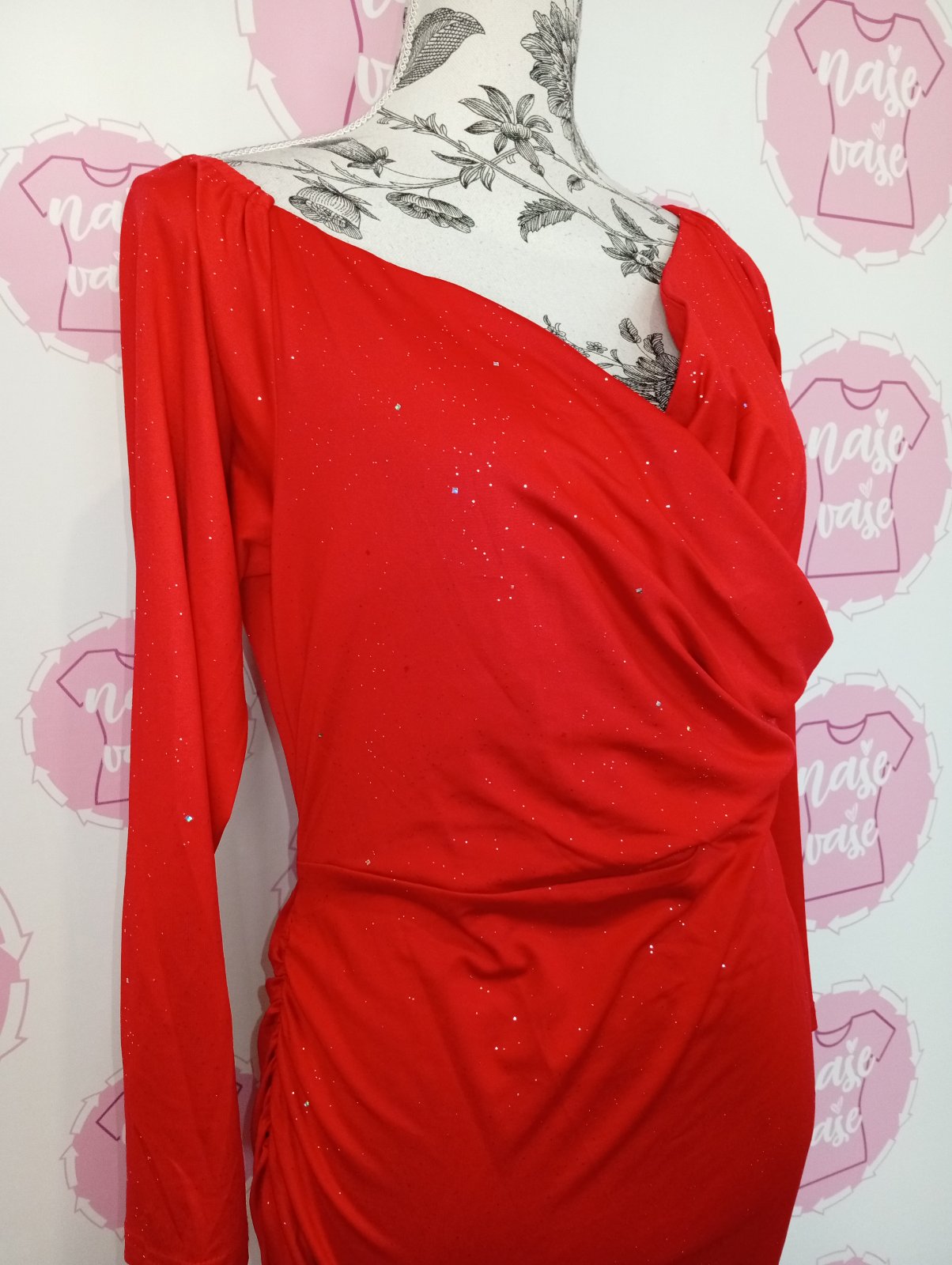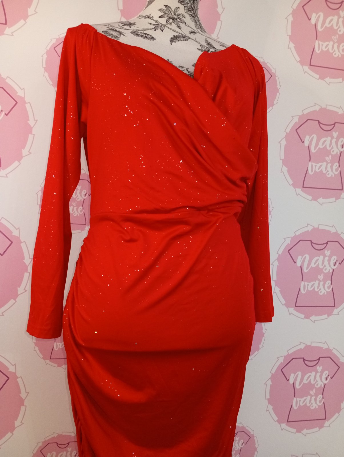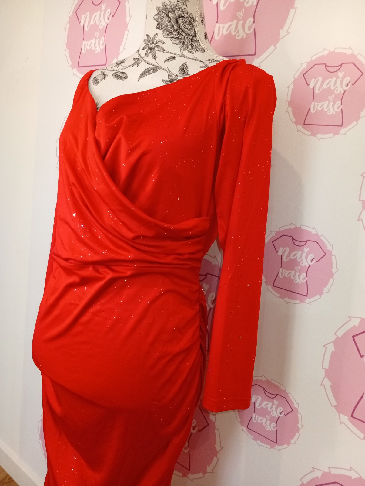 Červené trblietavé šaty s viazaním