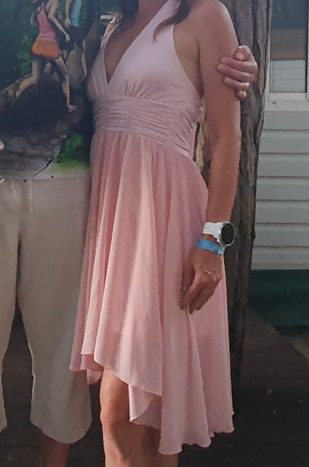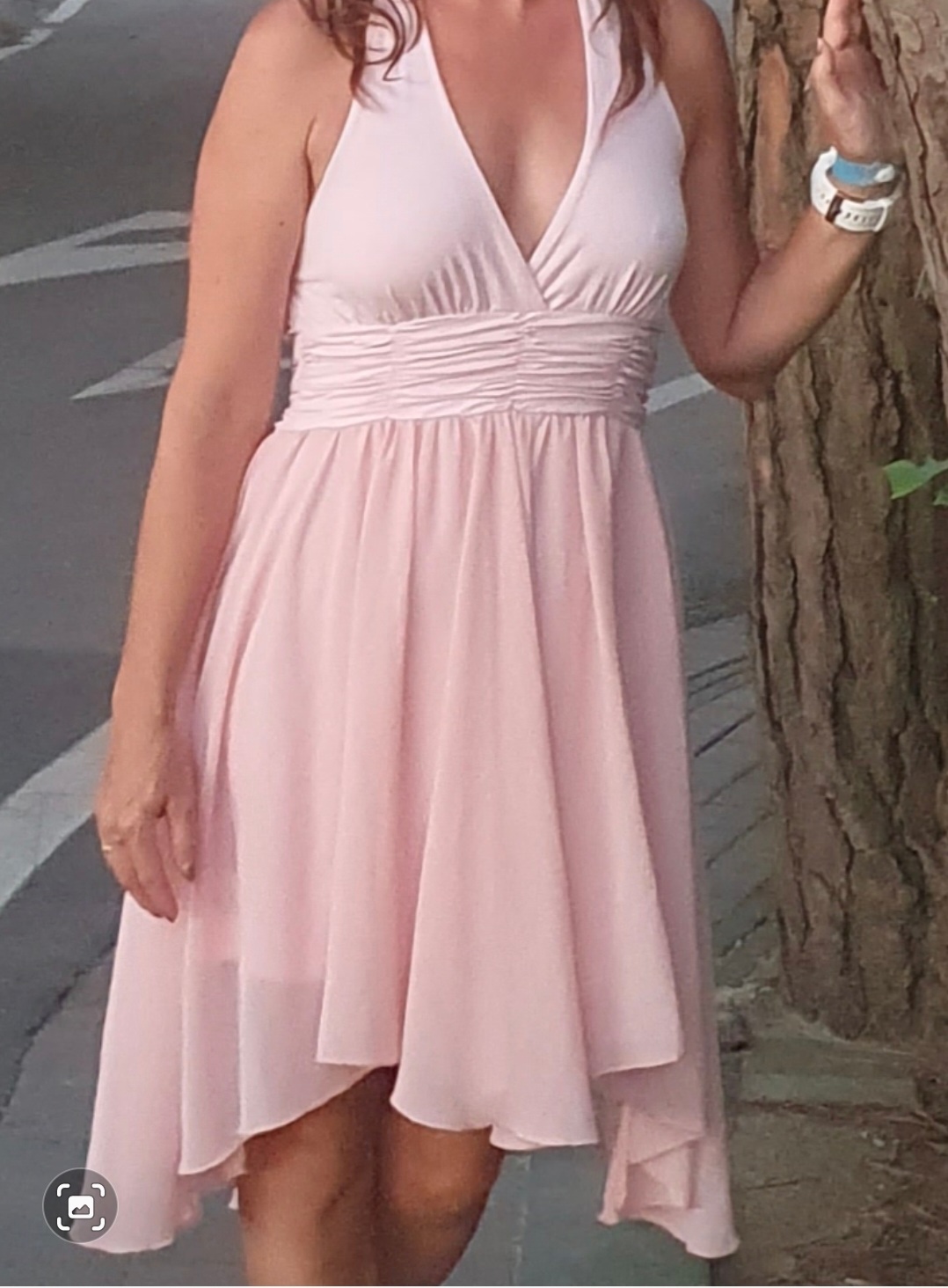 Letné šaty, bavlnený úplet + priehľadná asymetrická sukňová časť, spodná vrstva z tenkého úpletu. Uväzovanie okolo krku.