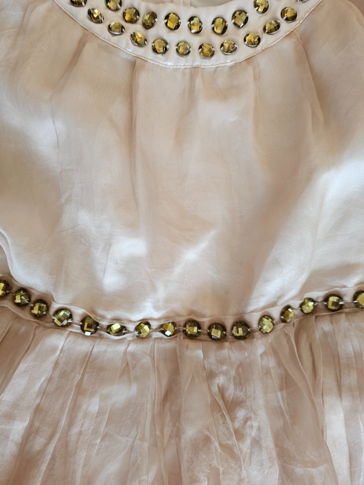 Jemnunke bledo ružovo -lososove šaty značky Next. POZOR - su nové len bez visacky, neoprate, ale maju vadu,ktoeu som.si nevsimla, v tej tylovej casti maju dierku, pozrite posledne fotky, zle sa to fotilo,nie je to vidiet, ale upozornujem. Sirka cez prsia 46cm, sirka v pase 36,5 cm, dlzka od ramena 103cm. Vzadu na zips a opasok vzadu je napevno