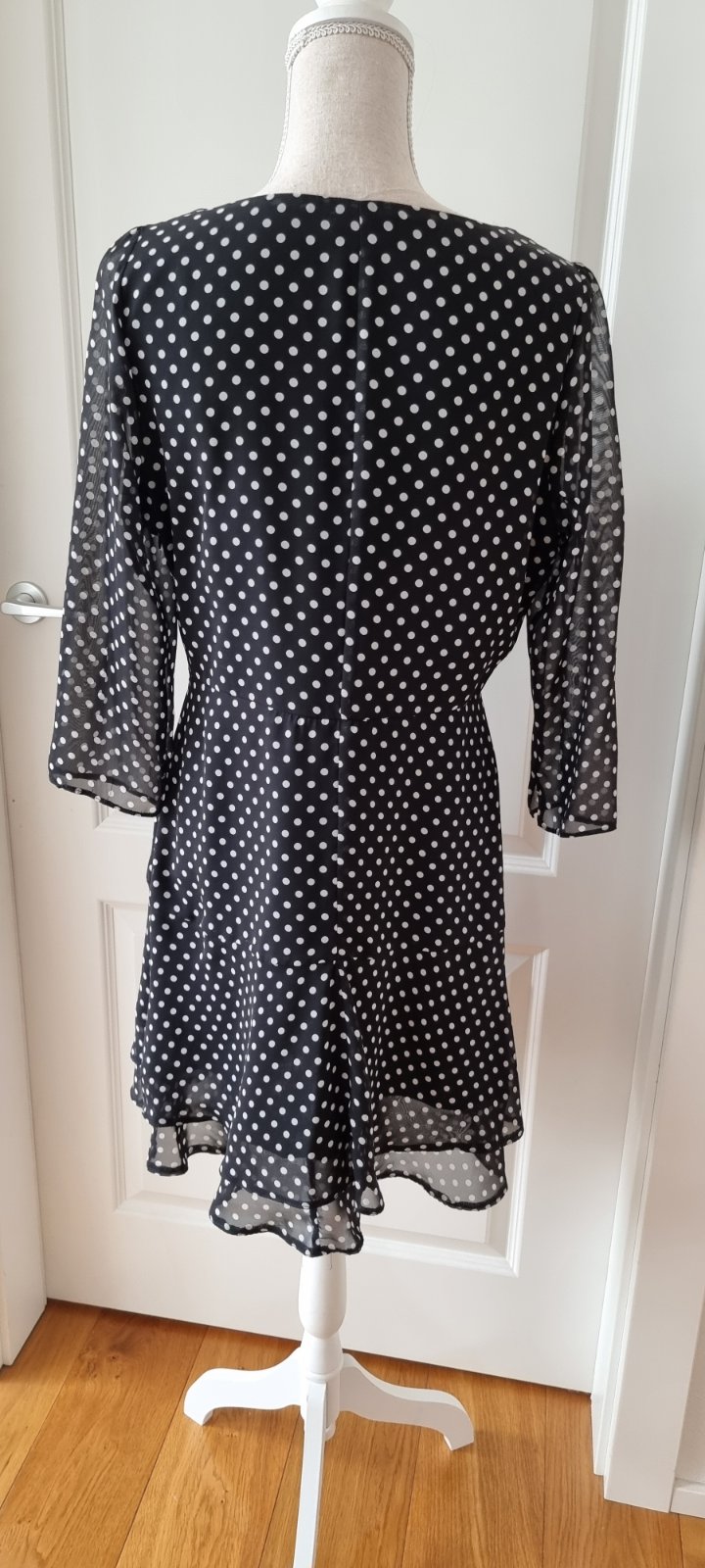 Minimálne nosené šaty, šírka cez prsia 2x50cm cez pás 2x43cm cez boky 2x51cm. Sú elastické tak sa ešte natiahnu. Dĺžka od ramena je 95cm.