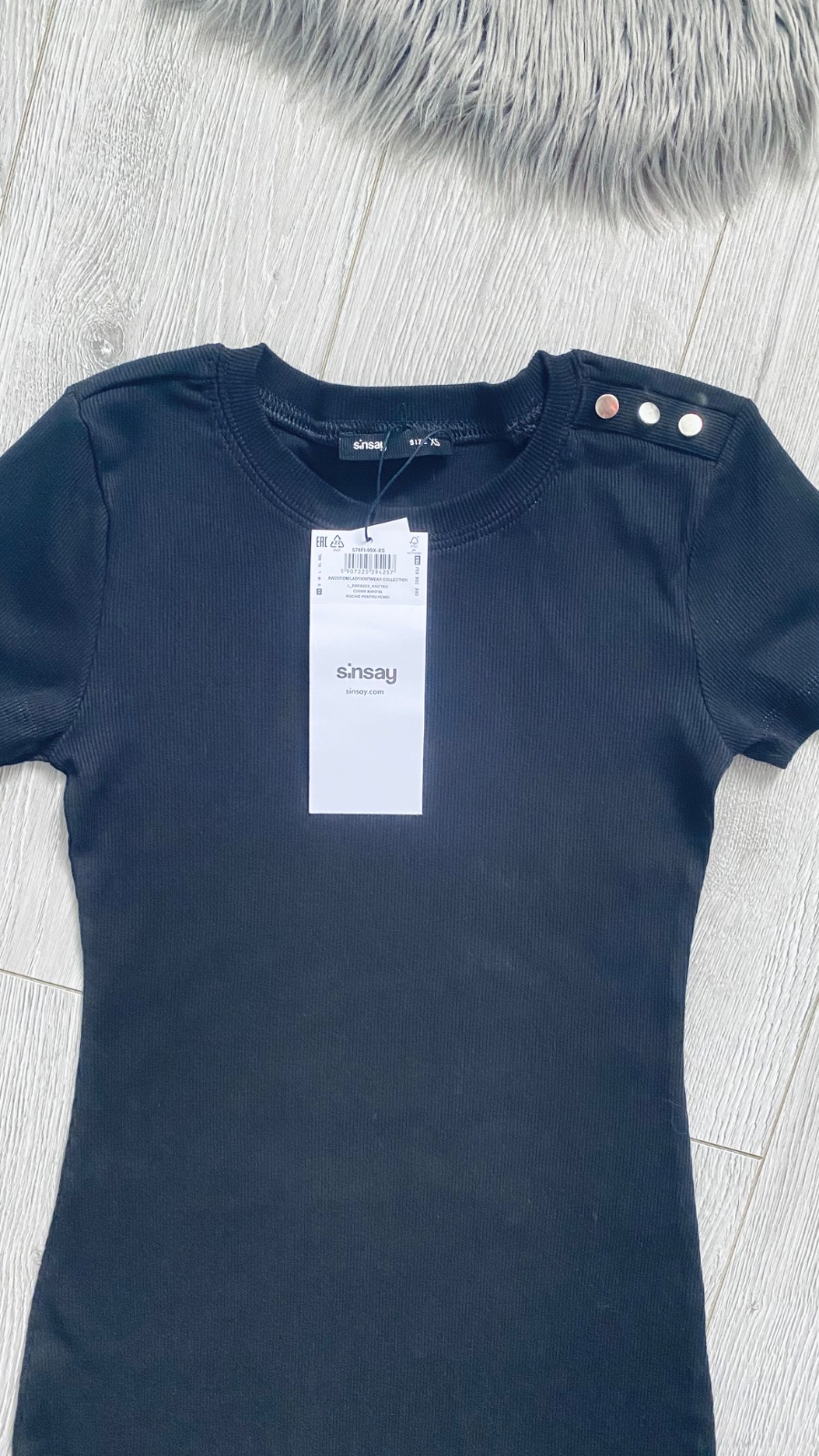 Čierne šaty s ozdobnými gombíkmi , vrúbkovaný elastický materiál , veľkosť xs.