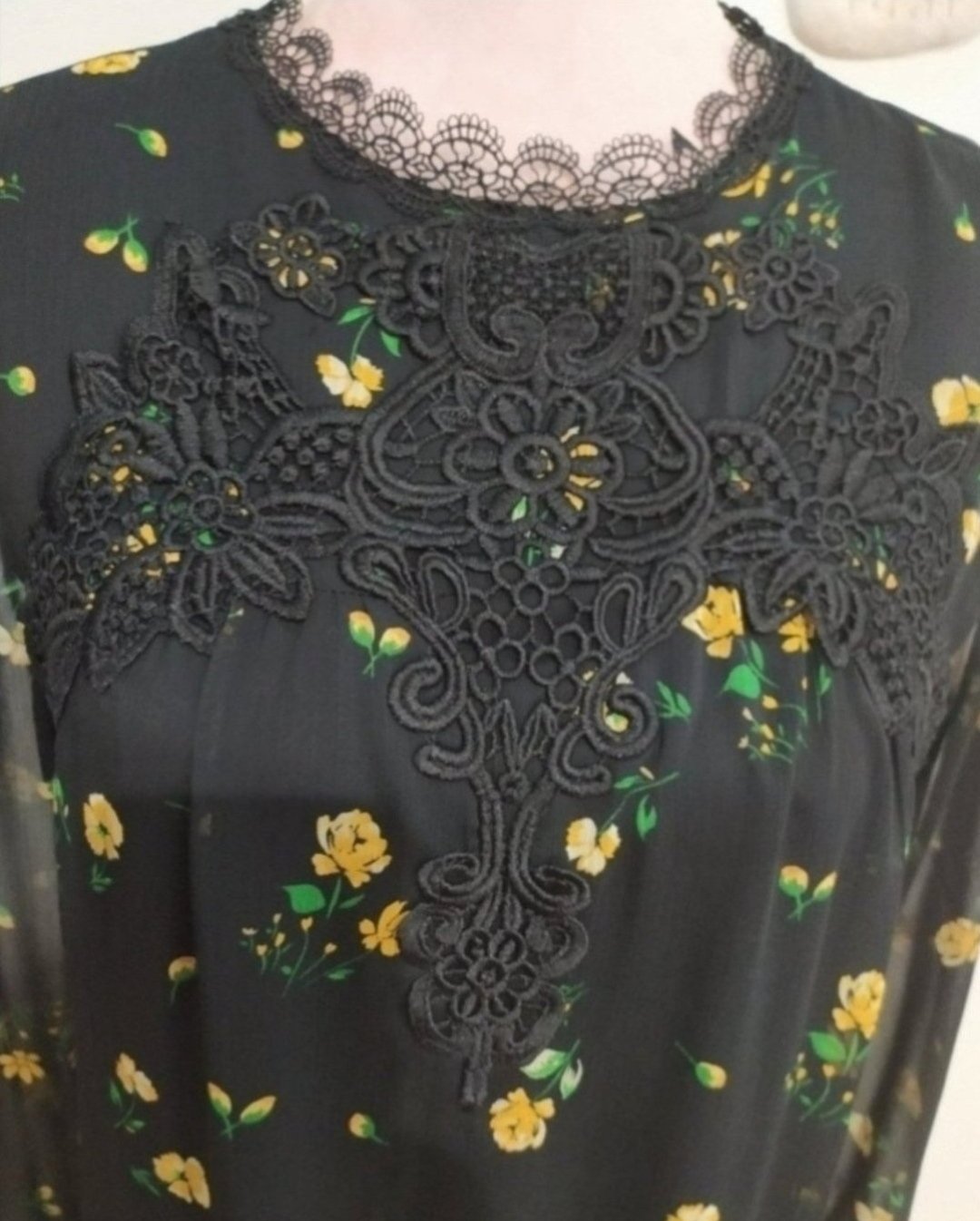 Top stav,materiál šifon,zdobené na dekolte krajkou,rukáv taktiež ukončený krajkou