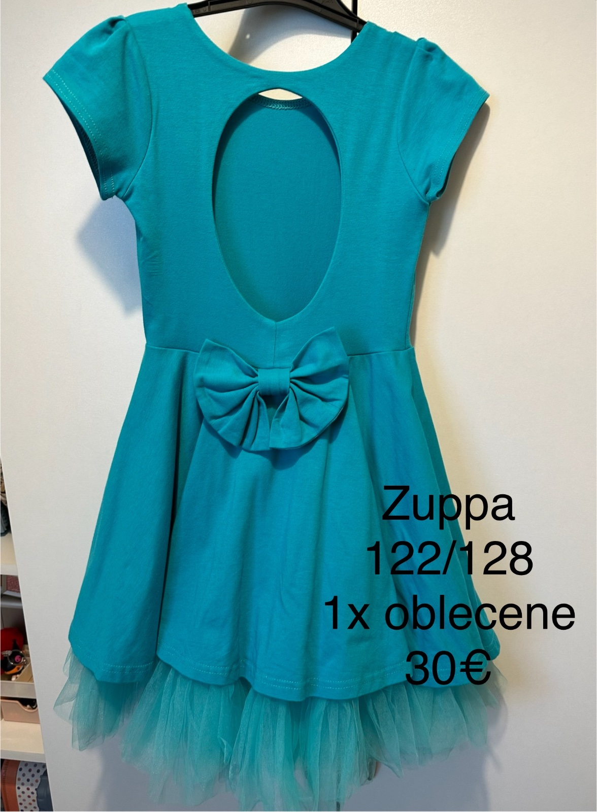 Predám prekrásne tyrkysové šatočky. Vrch je flitrovaný. Mali sme ich až raz. Žiaľ sú na nich 2 mini zatiahnutia. Viď toto. Jedno vpredu, jedno vzadu. Na tých šatočkách to tak nevidno. Majú spodničk...