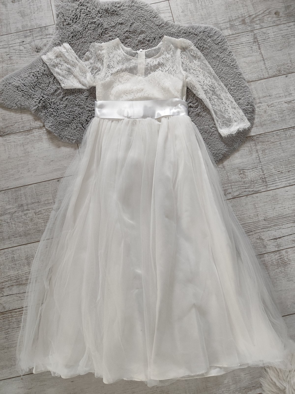 Predám šaty na 1.sv.prijímanie. Stuha okolo pása je len jemne prichytená, nakoľko nám bolo širšie.