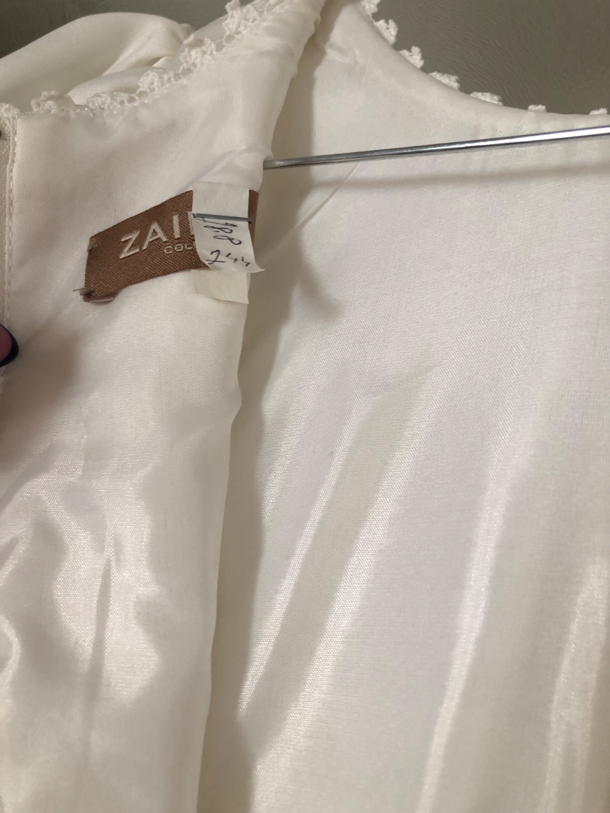 Nádherné šaty značky ZAIRA vo farbe slonia kosť. Šerpa vo výraznej fuschiovej/magenta farbe. Oblečené ich mali moje dve dcéry na 1. svätom prijímaní. Šaty sú vo francúzskom štýle, jednoduché, so spodnicou, ukončené čipkou. Vzadu je zips, prekrytý francúzskymi gombíkmi. Nafúknuté rukávy, nadčasové, neprehnané. Dĺžka 102 cm, pod pazuchou 34cm, pás 33 cm. Šaty sú vyčistené v čistiarni a pripravené na oblečenie. Chybička krásy je malý fliačik vedľa pravého rukáva pri pazuche (nafotené). Sedia na normálnu, pripadne útlejšiu postavu. Ideálny je osobný odber v Liptovskom Mikuláši, nakoľko neručím, či by sa skladaním a prepravou nezdeformovali.