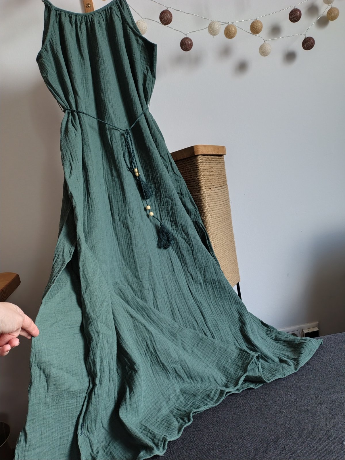 Bavlneny muselin, dlzka cca 136cm + nastavitelne ramienka. Zelene S