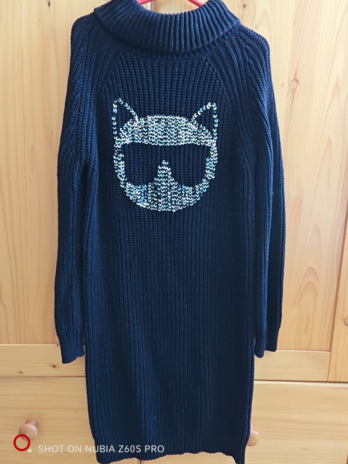 Kvalitné originál KL svetrové šaty s choupette, boli veľmi drahé ale sú pekné a kvalitne, prijemne, taka kvalitna svetrikovina, sedia tak na 12 -13 rokov, alebo nižšiu, chudsiu žienku