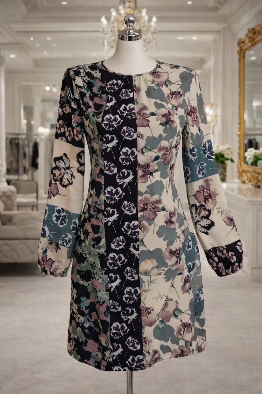 Romantické šaty značky Sisley v jedinečnom patchwork kvetinovom vzore, ktorý pôsobí sviežo – umelecky – luxusne.