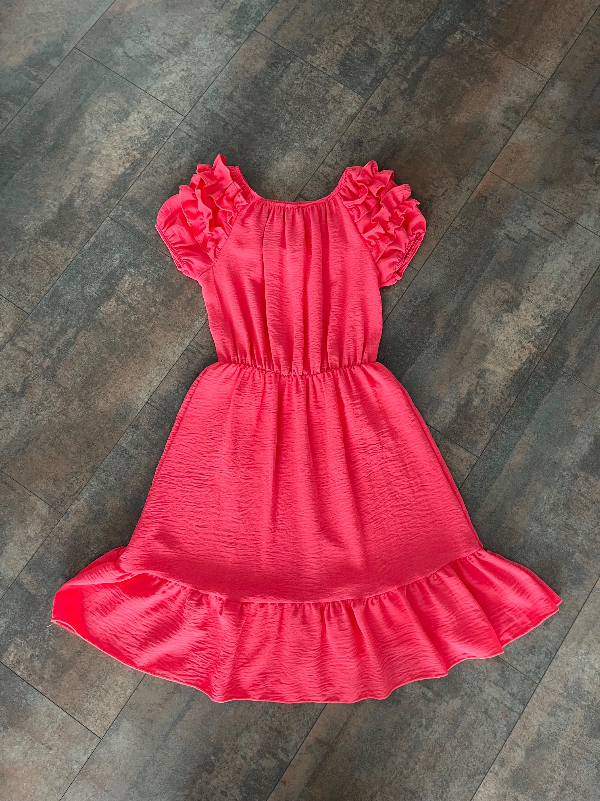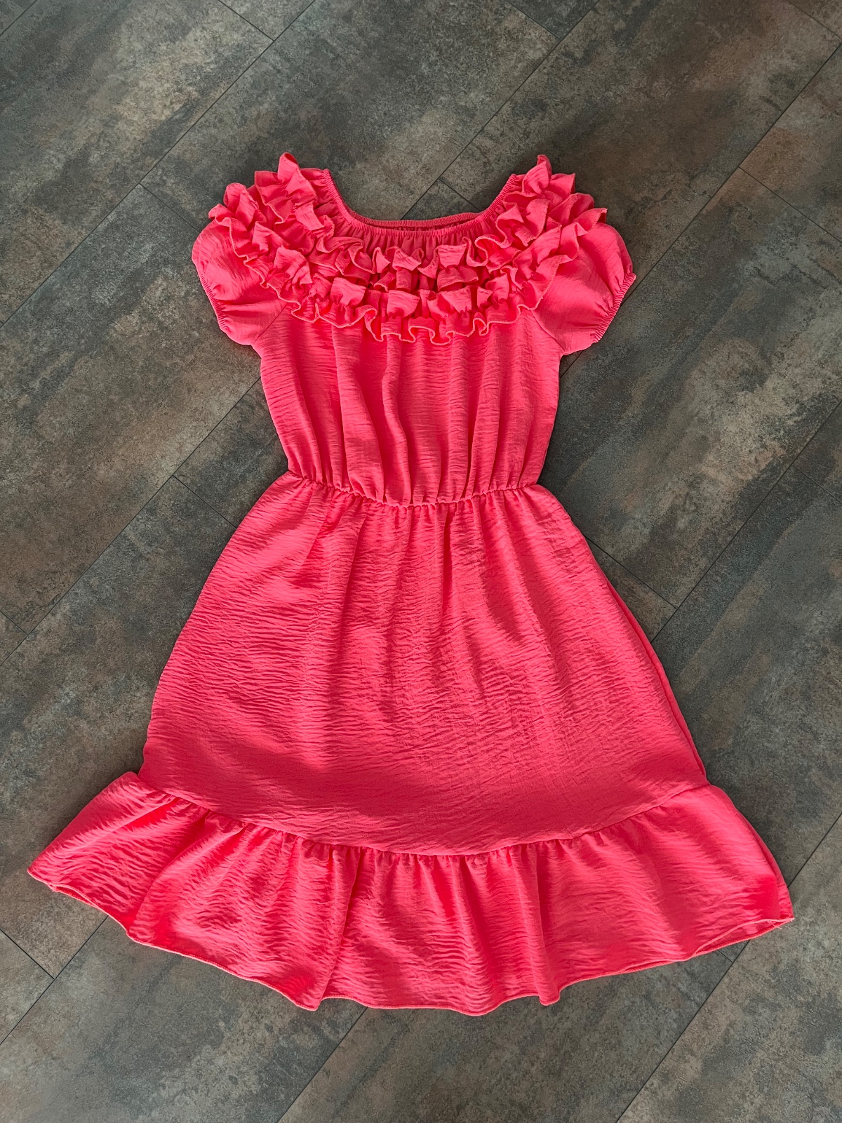 Nové elastické šaty s volánmi. Veľkosť ružových 152, žltých 146. Cena 9 / kus