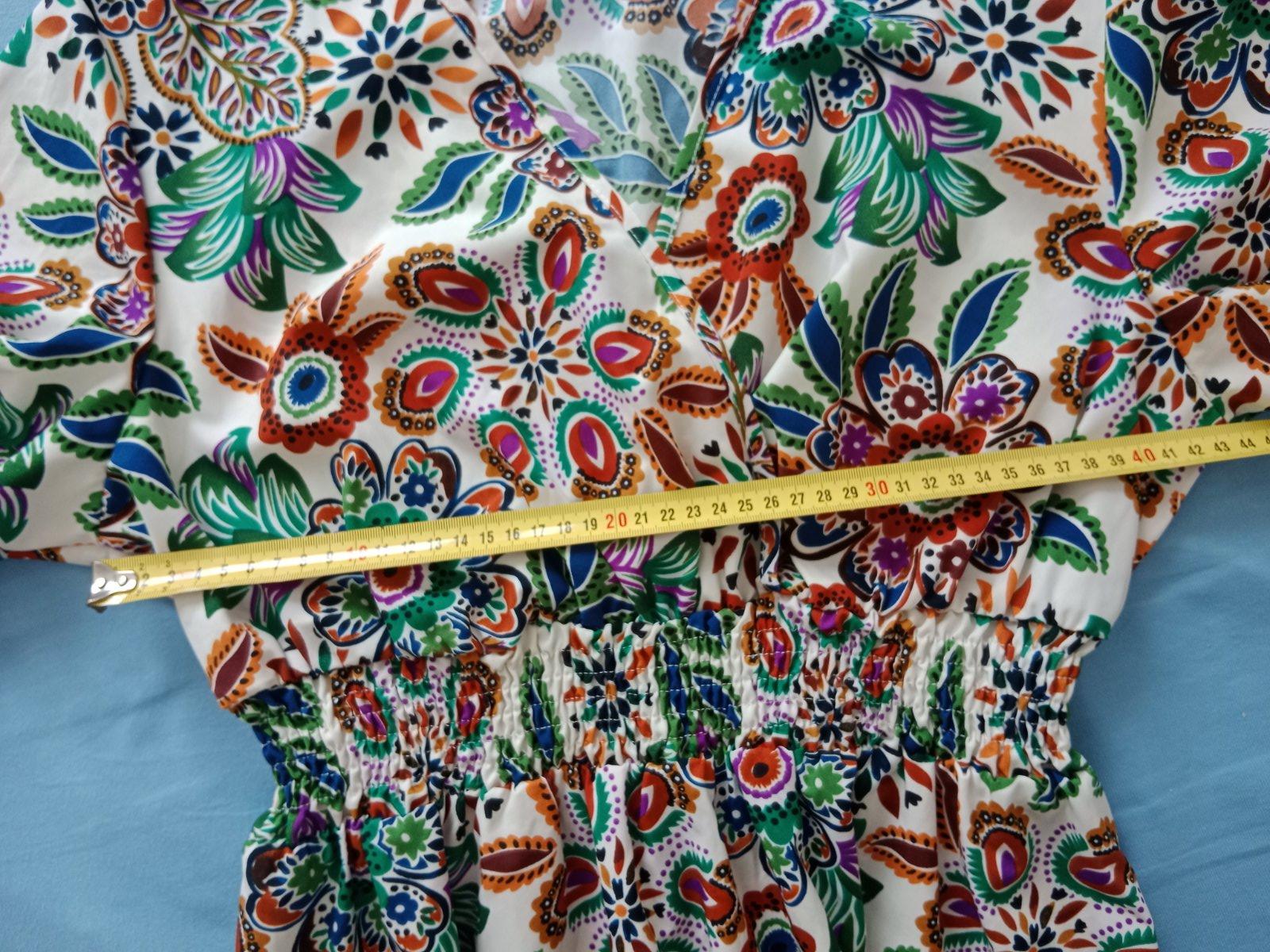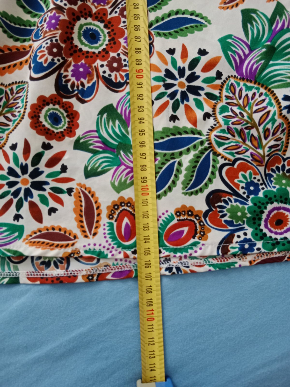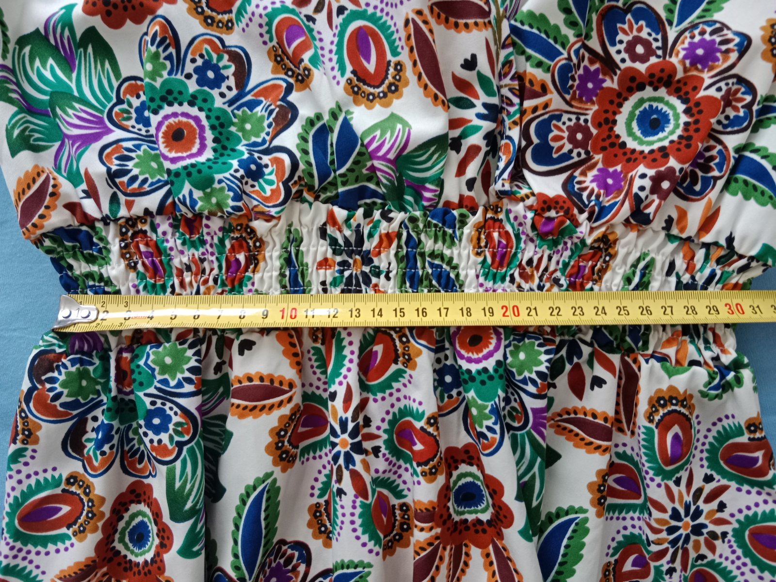 Kúpené z druhej ruky, nesadli mi. Rozmery sú nafotené. Rozmer cez prsia sa nedá lepšie odfotiť, je to tam mierne nazbierkané, takže rozmer je väčší. V páse je hrubšia gumička, ktorá sa natiahne. Bez poškodenia, top stav. Vhodné na bežné aj na príležitostné nosenie.