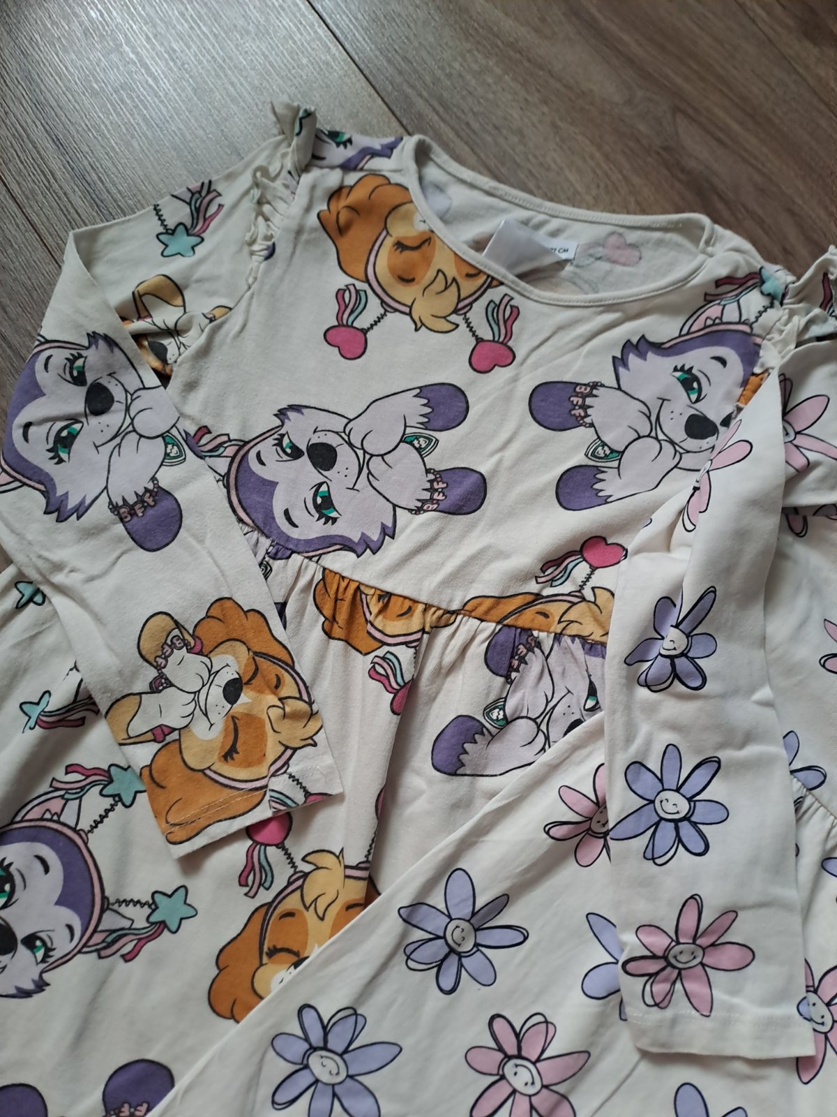 Krásne šaty pre malé dámy. S motívom Príjemné, pohodlné, netlačia voľný tričkový strih. Výborne sa nosia v lete na plavky alebo do každého počasia. Farba ako na fotografii. Rozmer: 92, 98, 104, 11...